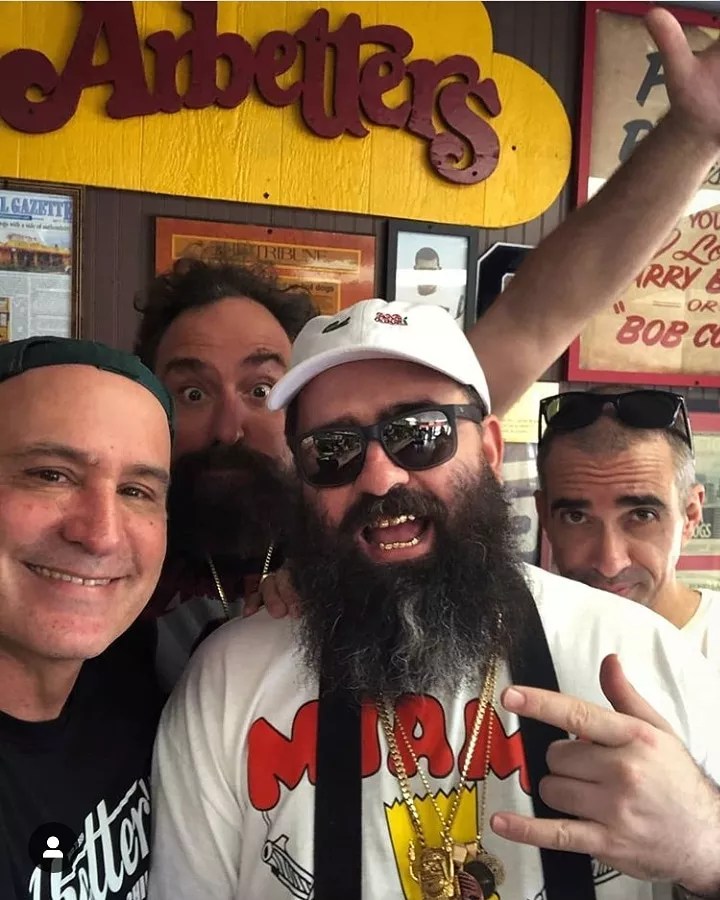 David Arbetter (left), Notorious Nastie, AholSniffsGlue, and Abel Sanchez at Arbetter’s Hot Dogs.