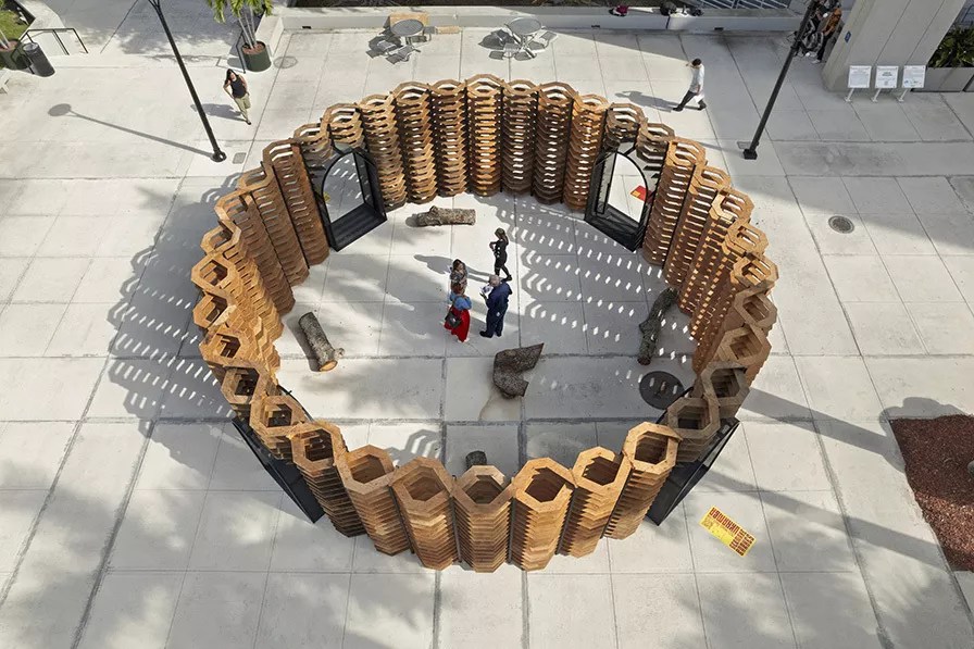 “Ukhamba,” which was sited on the Building 1 Plaza at MDC’s Wolfson Campus in November of 2023, where it will remain until the end of February, will now be reinstalled on MDC’s North Campus beginning Wednesday, March 6, where it will stay through Sunday, May 26.