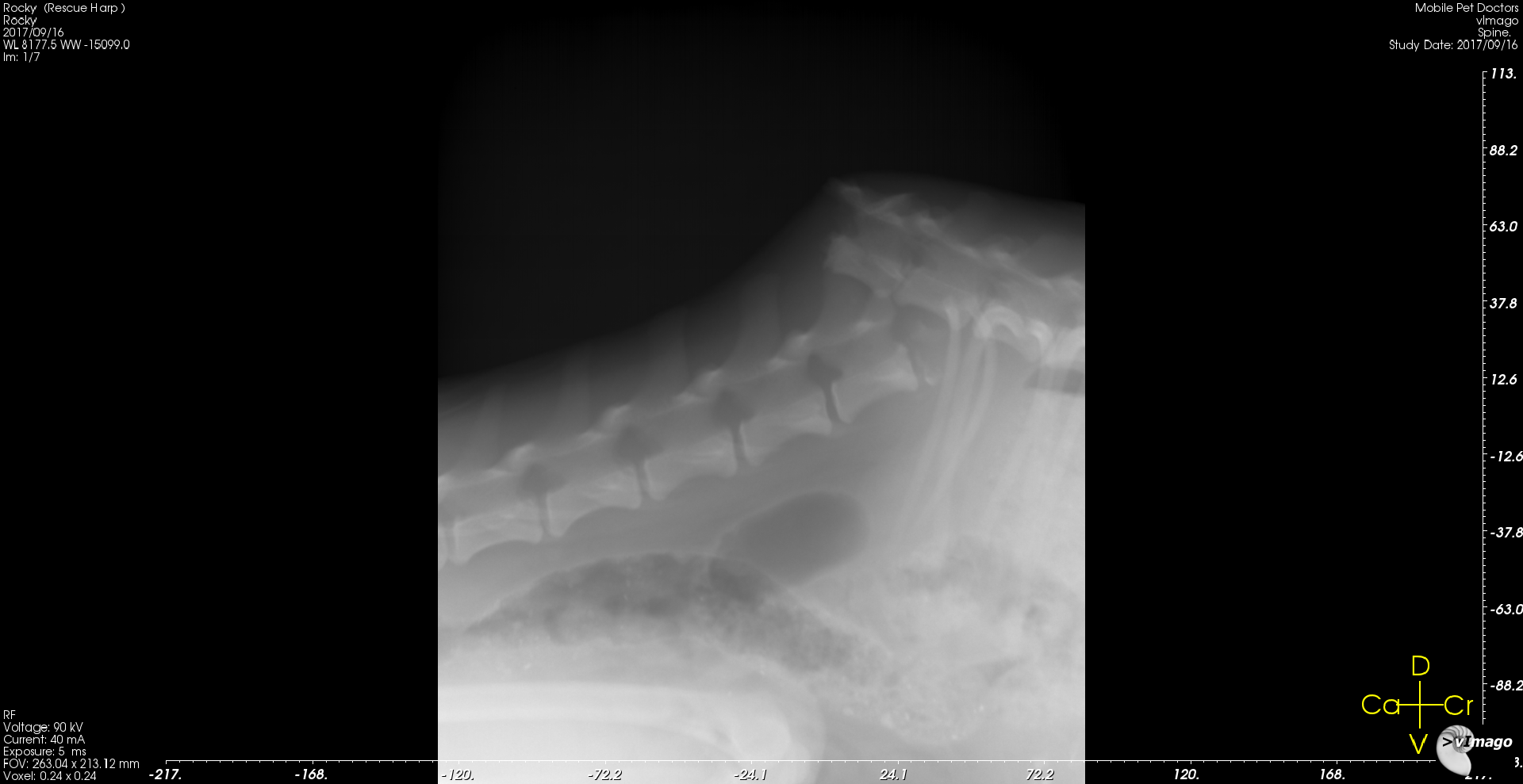 CT Scan of “Rocky,” a dog rescued in Key Largo in the aftermath of Hurricane Irma. Volunteers say his spinal fracture was likely caused by a fallen tree branch or being picked up and flung by the wind during the storm.