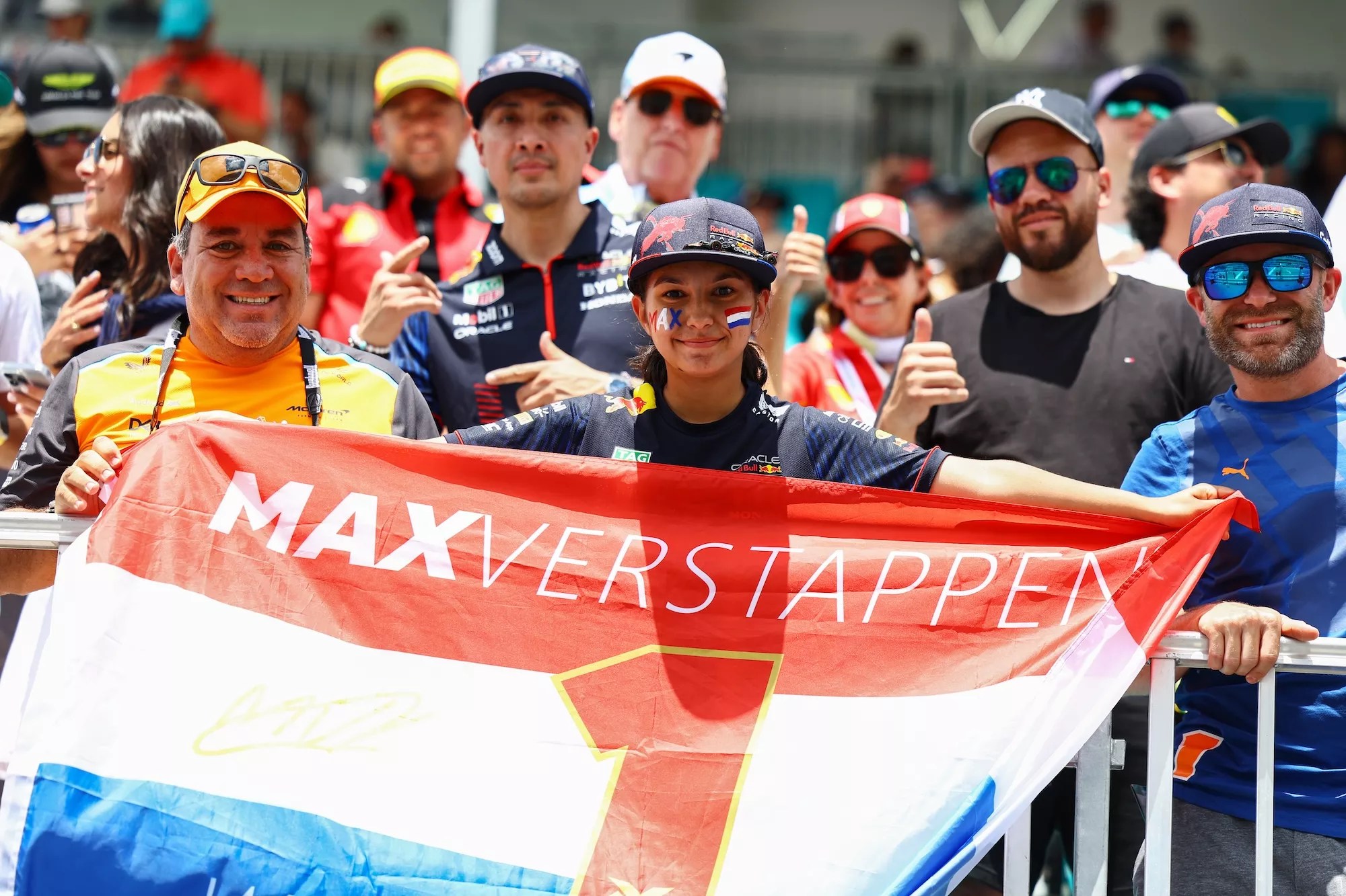 Fans show their support for Max Verstappen at the Miami Grand Prix.