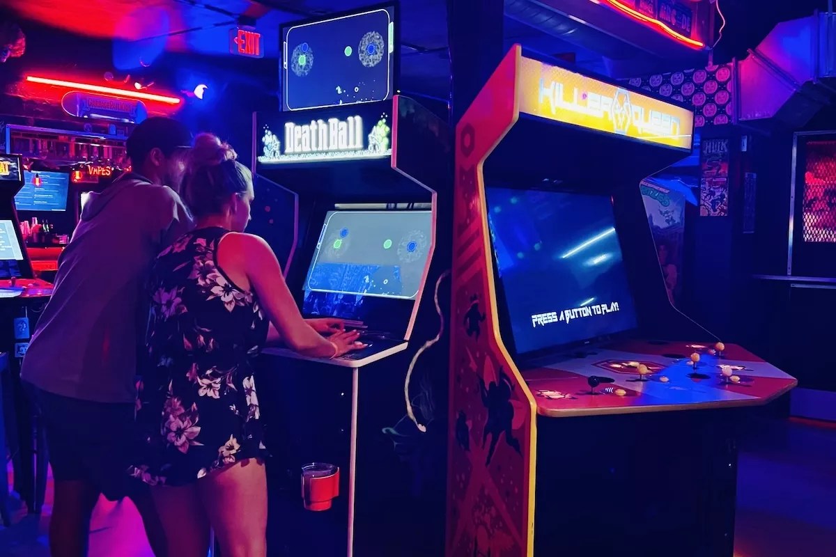 Arcade games at Glitch Bar are free and unlimited with a drink purchase.