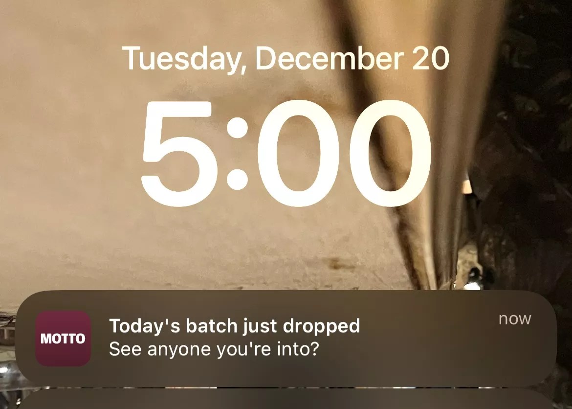 Motto first launched in February with Miami as its first city, followed by New York City. However, a recent update in September changed the matchmaking experience entirely. Users are only able to view five to ten profiles per day in an effort to cut down screen time. The queue repopulates at 5 p.m. daily with a different batch of possible matches.
