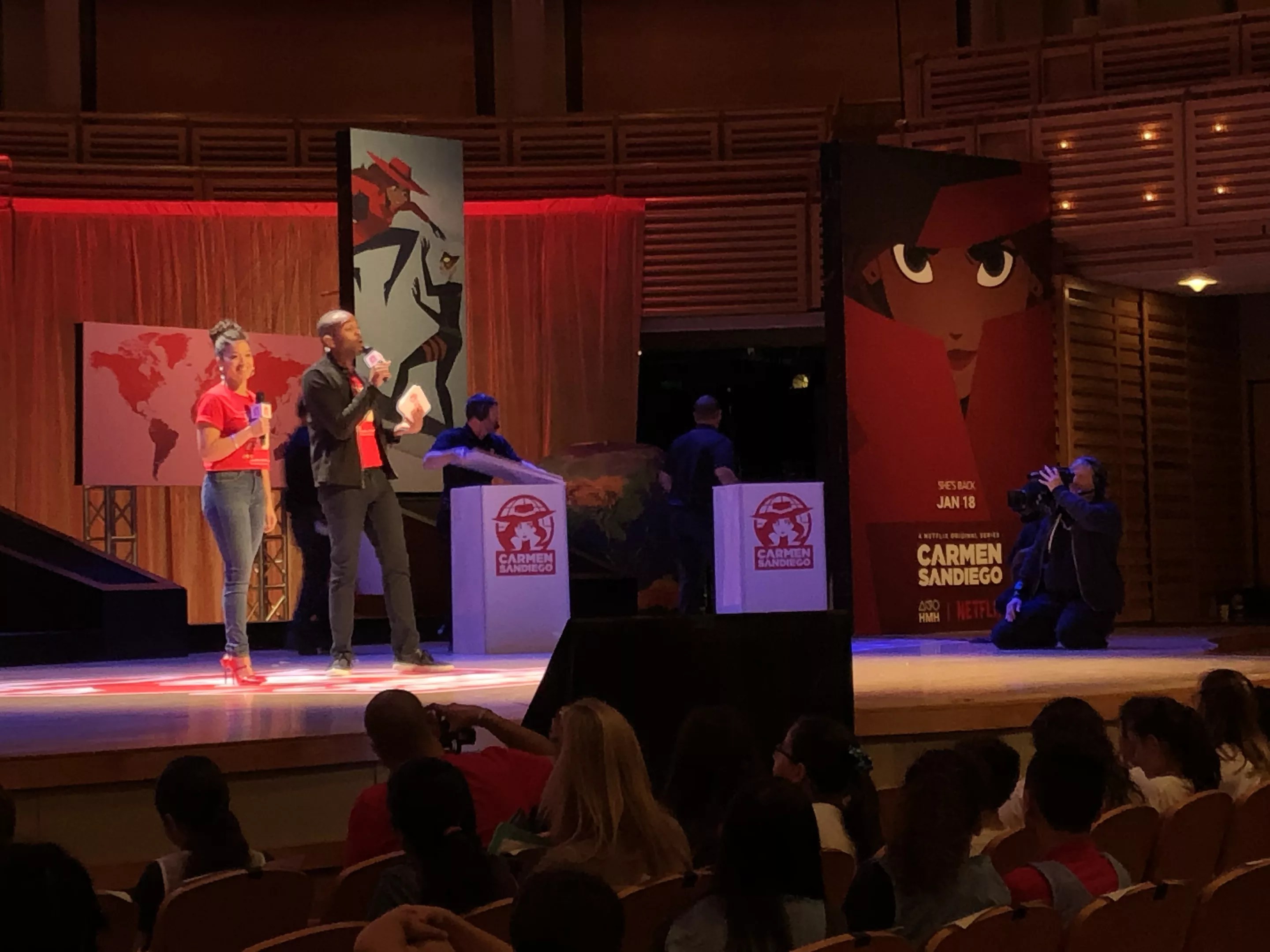 The students were also treated to an exclusive clip from the upcoming series, in which Carmen Sandiego travels to Ecuador, and watched a video message from fellow Carmen Sandiego voice actor Finn Wolfhard of Stranger Things fame.