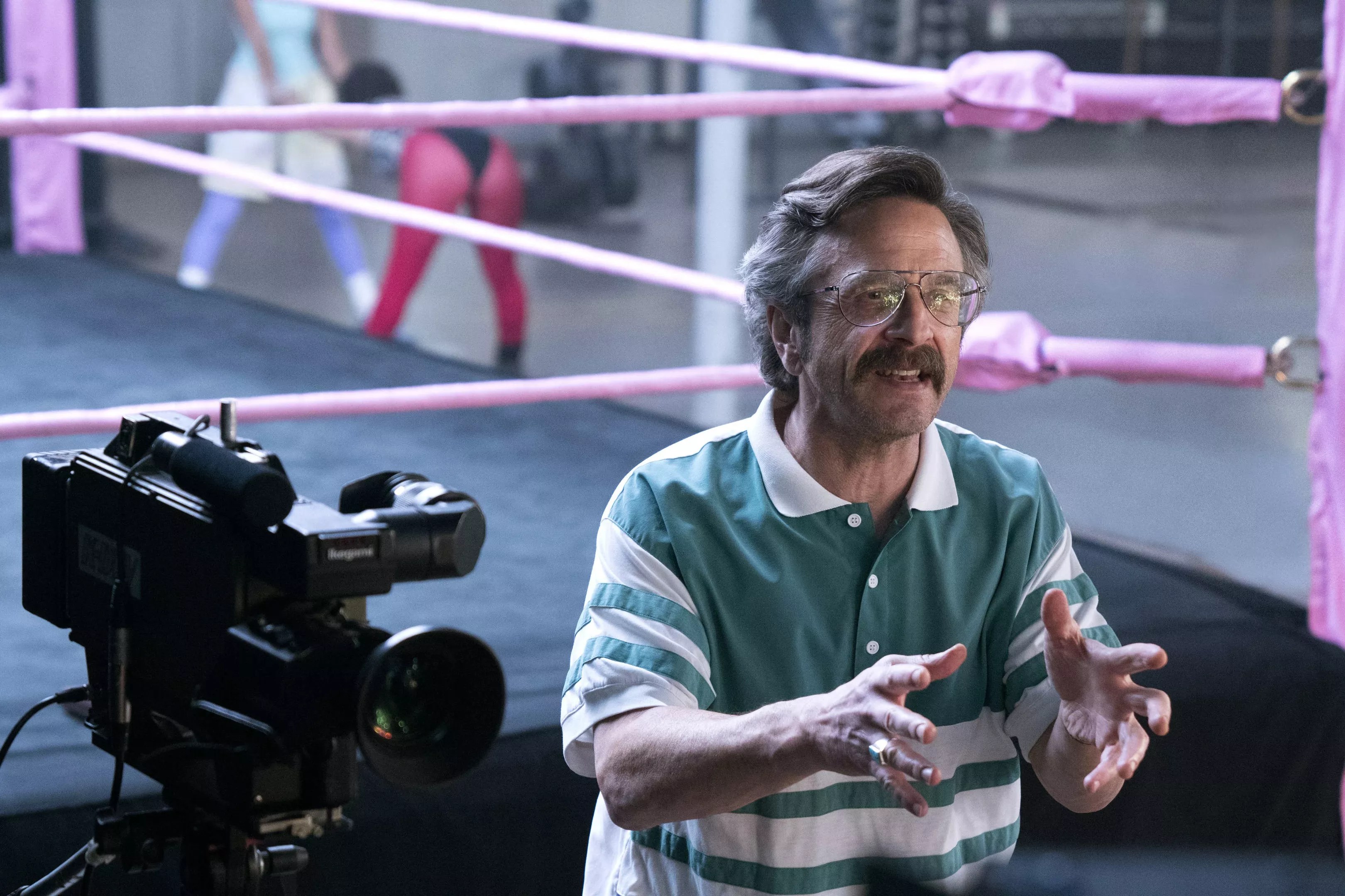 In the opener of the second season of GLOW, the Netflix comedy based on the syndicated 1980s women’s wrestling series, Marc Maron’s character, a director named Sam Sylvia, turns to new cameraman Russell (Victor Quinaz) and asks, exasperated, “You ever work with this many women?” Sure, Russell replies. He used to shoot porn.