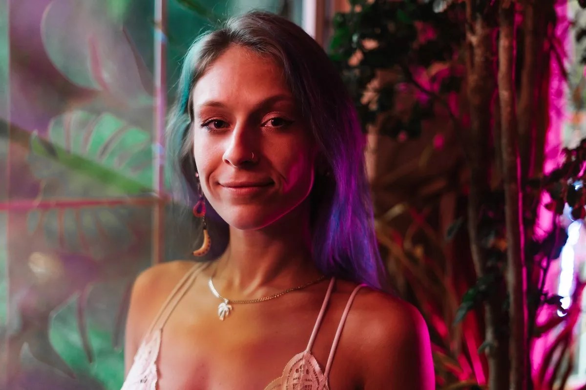 She bounces in her seat and smiles as she recalls her first professional collaboration, with light artist Olivia Steele. The pair connected online via social media, and after a handful of conversations, Steele invited a then-22-year-old Tomchin to visit her while on location in Tulum, Mexico, to talk art.