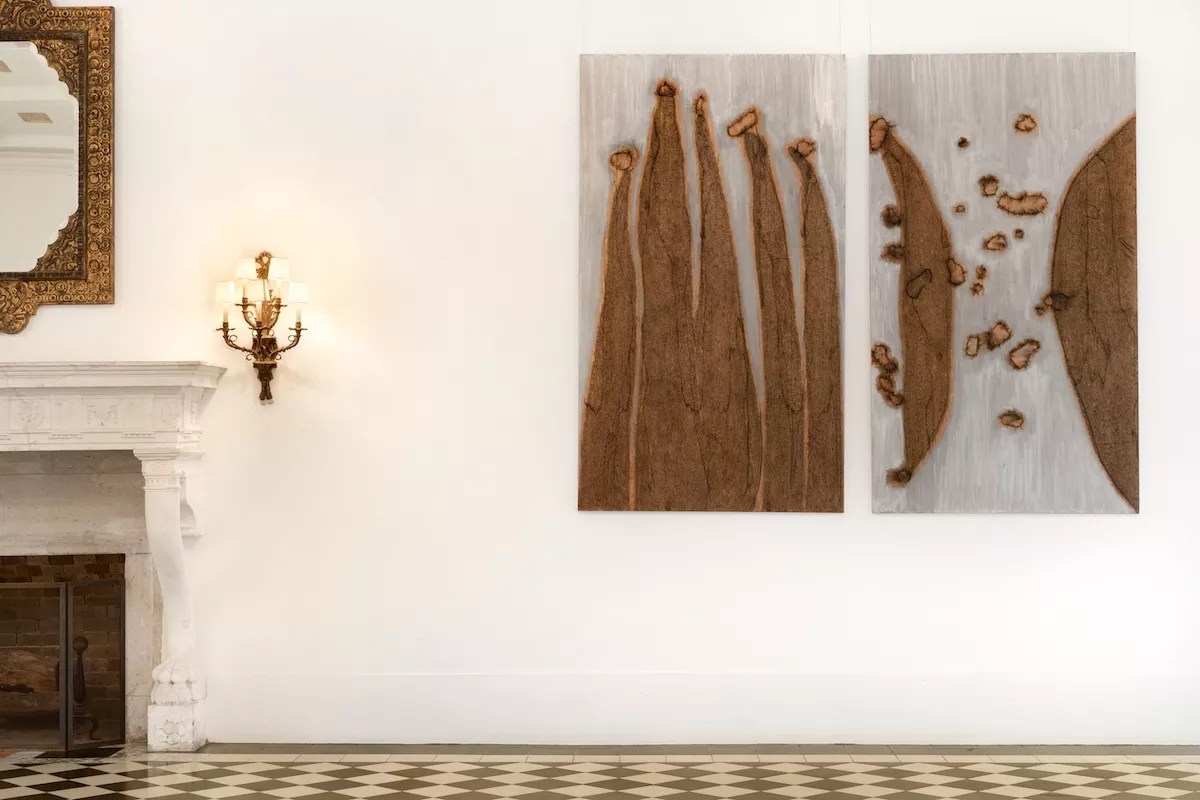 Installation image of Mira Lehr’s painting, Pandora’s Blossoms, at Miami’s Deering Estate