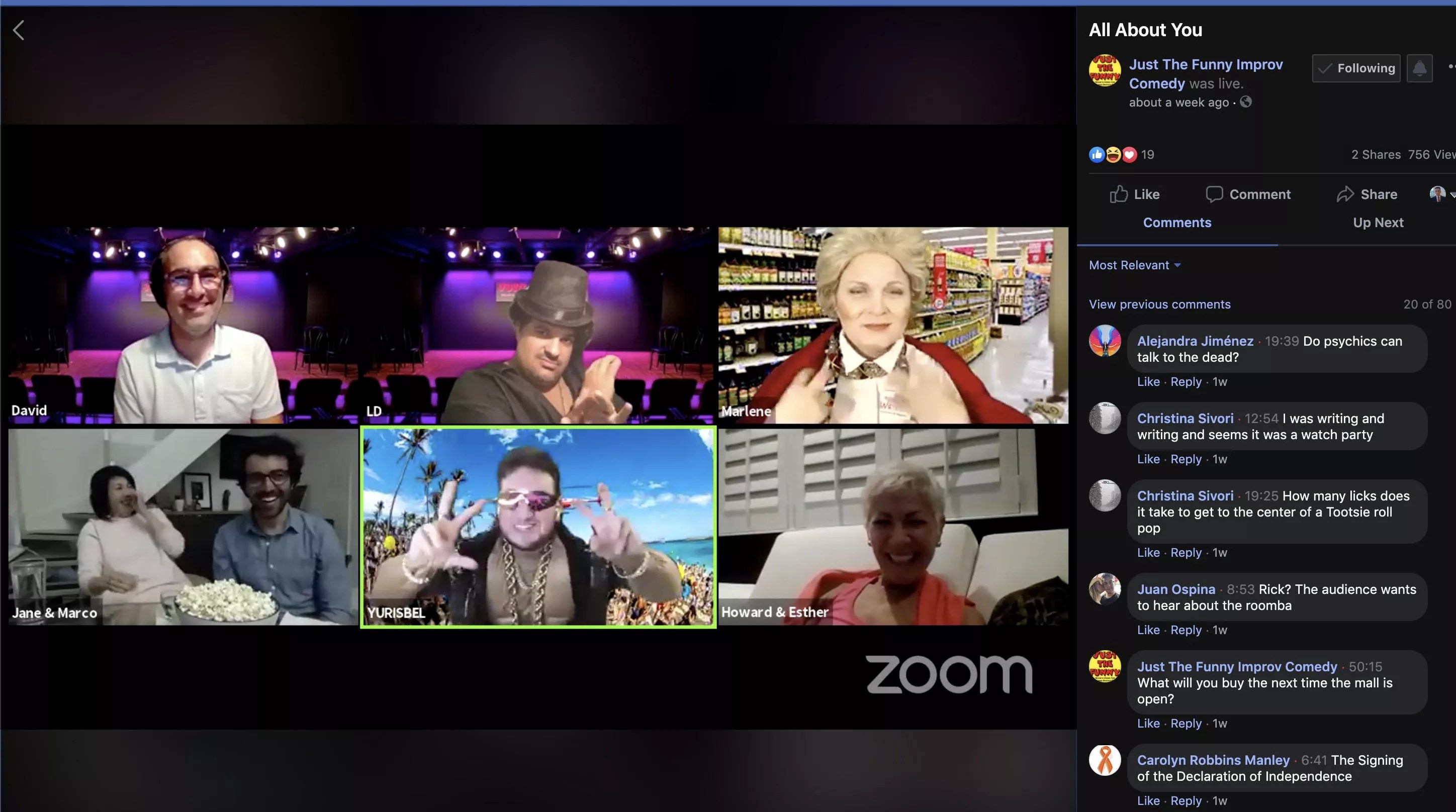 Hernandez typically works with the Miami-based sketch and improv theater Just the Funny. These days, the venue uses Zoom to stream its Thursday and Saturday shows on Facebook Live. Like your typical improv show, the livestream relies heavily on audience interaction.
