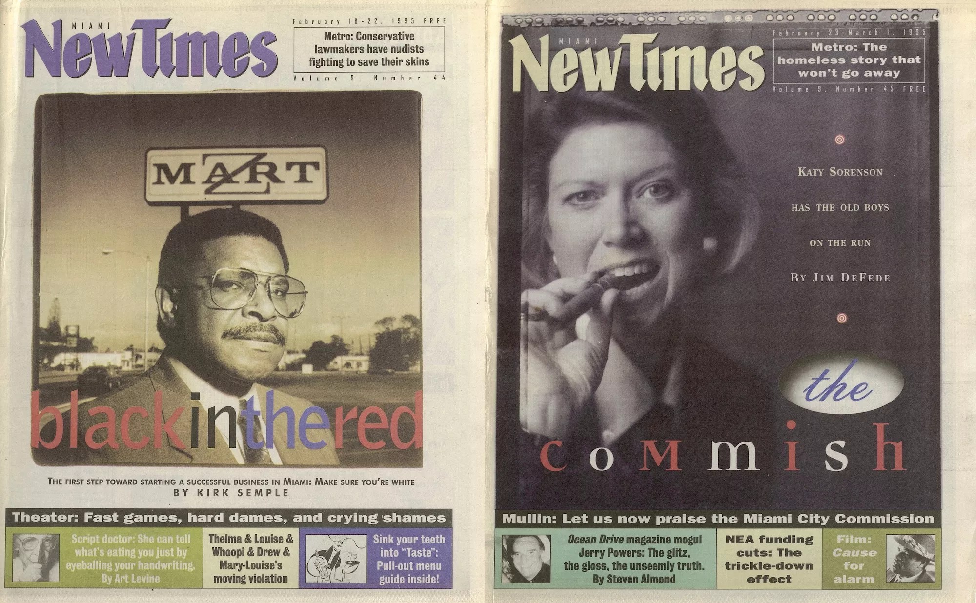 If it’s hard news you were after, the issues of February 16 and February 23, 1995, did not disappoint. Staff writer Kirk Semple’s “Black in the Red,” featured on the cover of the February16-22 edition, examined the promise and failure of Z Mart, a Black-owned department store in Liberty City that had filed for bankruptcy the previous fall, having been open for a scant three years.