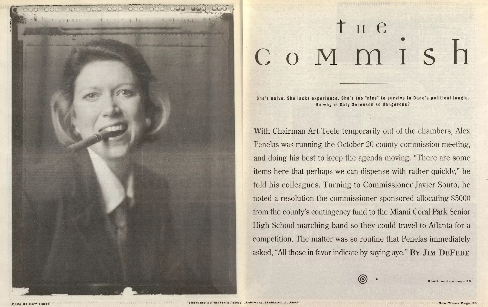 The opening spread of “The Commish,” a feature profile of Dade County Commissioner Katy Sorenson that appeared in the February 23-March 1, 1995, issue of New Times