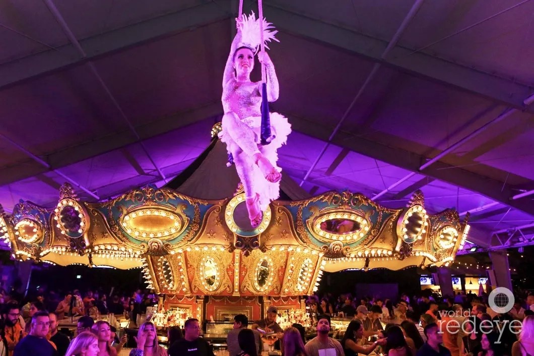 The excitement of the Twilight Funhouse continued at Carousel Club Saturday night! Guests enjoyed live performances from aerialists, stilt walkers, and fire dancers throughout the evening.