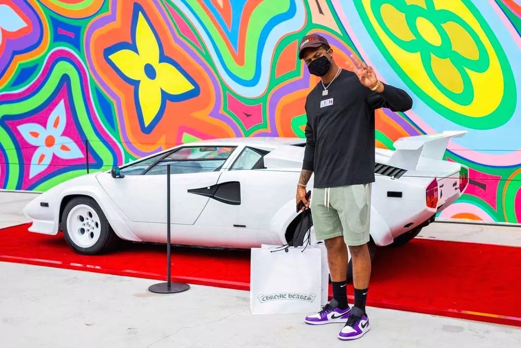 The Miami Design District hosted the annual Concours car show for the fourth year running, although this year, in keeping with social distancing measures only 30 cars were displayed. In town to take in everything the District has to offer were Actor Taylor Zakhar Perez and Houston Texan QB Deshaun Watson who both took a tour of the Concours car show with President and CEO of Dacra, Craig Robins and influencer Isaac Likes. All were wearing masks ahead of this image being taken.