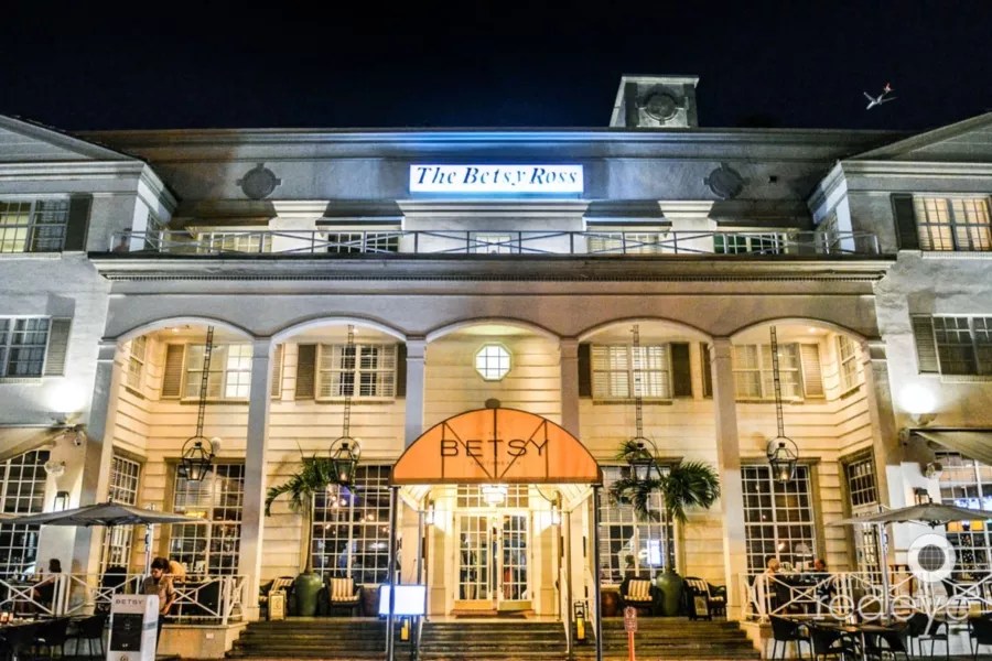 The Betsy Hotel’s façade was lit for the Miami Beach Culture Crawl, with jazz inside the front doors as part of the Betsy’s seven-nights-a-week live music program, featuring on this evening the Andres Gonzalez Duo. Nestled into the Lobby Salon and surrounded by the artwork of Andy Sweet, guests enjoyed the music and art as they sipped on cocktails.