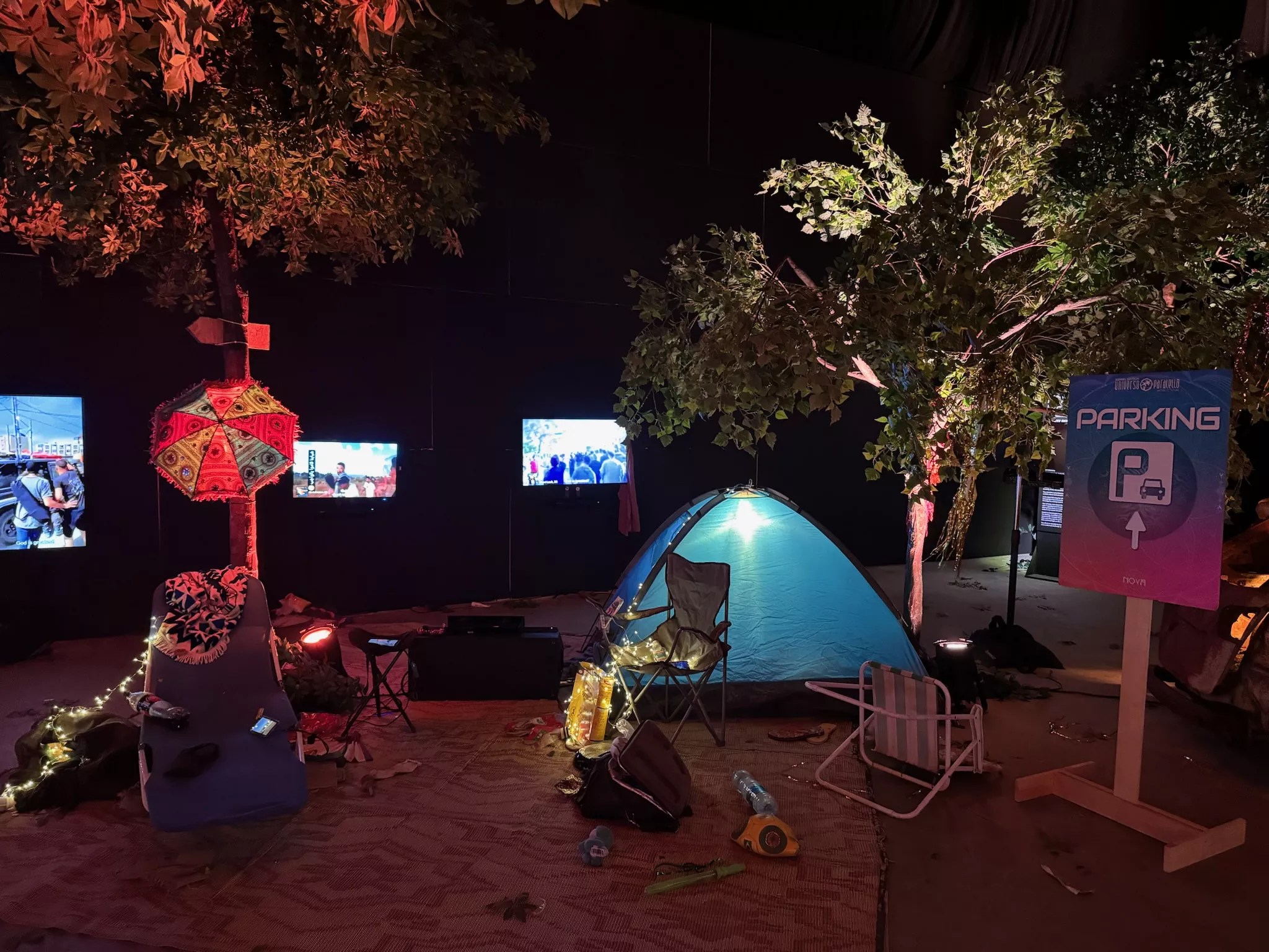 The exhibit re-creates the campsites that were abandoned when the attack began just after sunrise on October 7, 2023.
