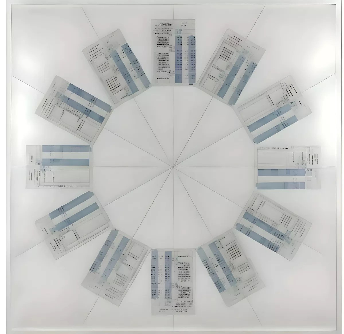 “I generally reassemble the individual objects creating a dodecagon, a 12-sided figure,” he says.