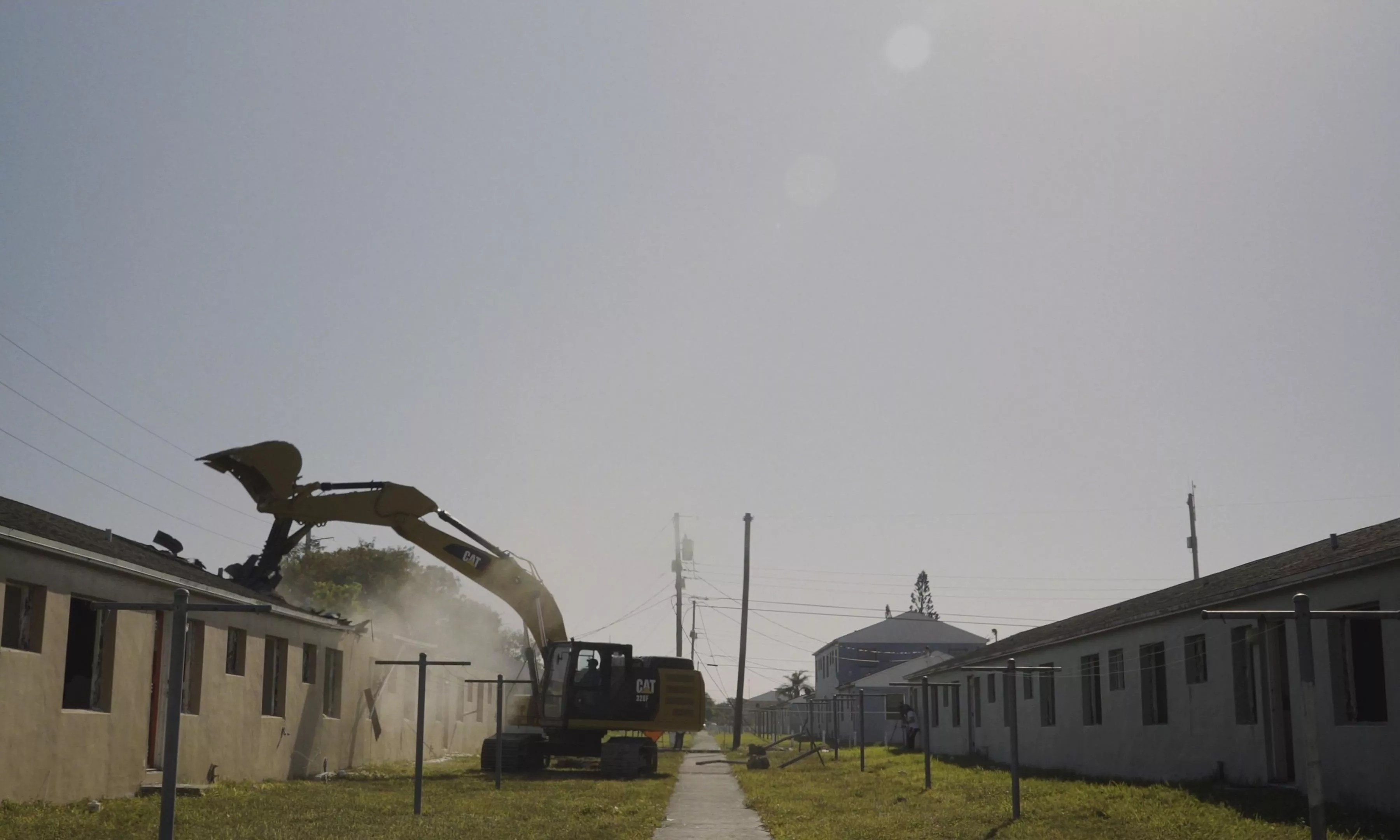 A bulldozer tears down a building in Liberty Square. The housing project’s redevelopment is the subject of Katja Esson’s documentary Razing Liberty Square.