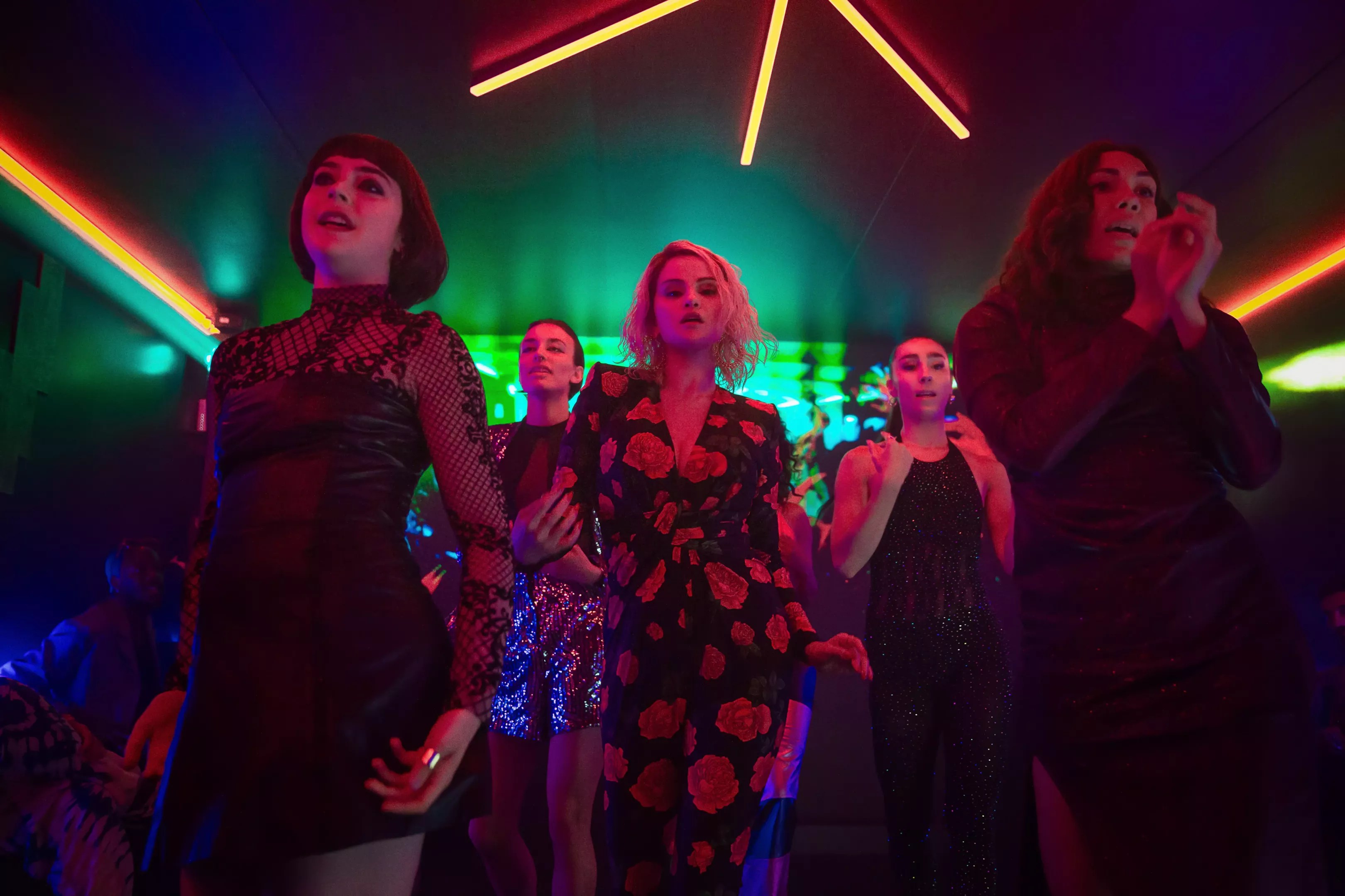 The film begins with Rita (Zoe Saldaña), a cynical attorney in Mexico City, making ends meet by defending guilty men against her conscience. One evening, after receiving a mysterious phone call, she’s bound, head-bagged, and thrown in a car to meet Manitas del Monte (Karla Sofia Gascón), a mass-murderer drug kingpin with a secret. She is a transgender woman who has remained in the closet for years for fear of violent reprisal from the other narcos. Having started hormone replacement therapy – she reveals her breasts to Rita as proof – she seeks to fake the death of Manitas, sends her supposedly clueless wife Jessi (Selena Gomez) to exile in Switzerland with their kids, and completes her transition with sex-reassignment surgery, starting a new life under the name Emilia Pérez.