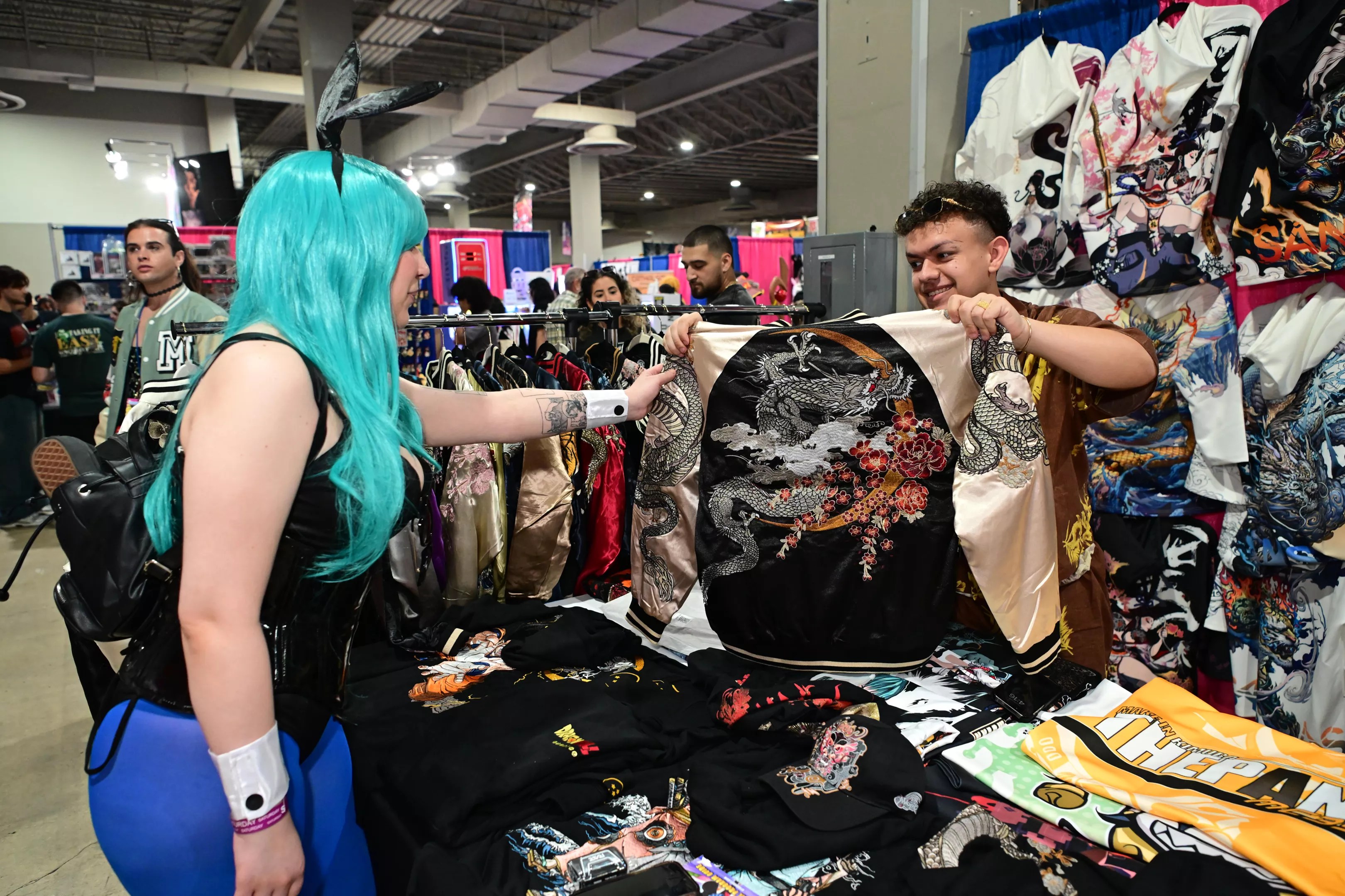 This year’s exhibitors included Pro-Play Games, KnoWhere Toys, and Flynn’s Arcade. Japanese media dominated each booth’s merchandise, displaying figures, plushies, and posters of franchises including Sailor Moon, Gundam, and Godzilla. Attendees flooded the exhibit floor by 1 p.m. on Saturday. Amid the chaos, cosplayer Trevohnn Garner and other content creators chatted with fellow attendees on both floors.