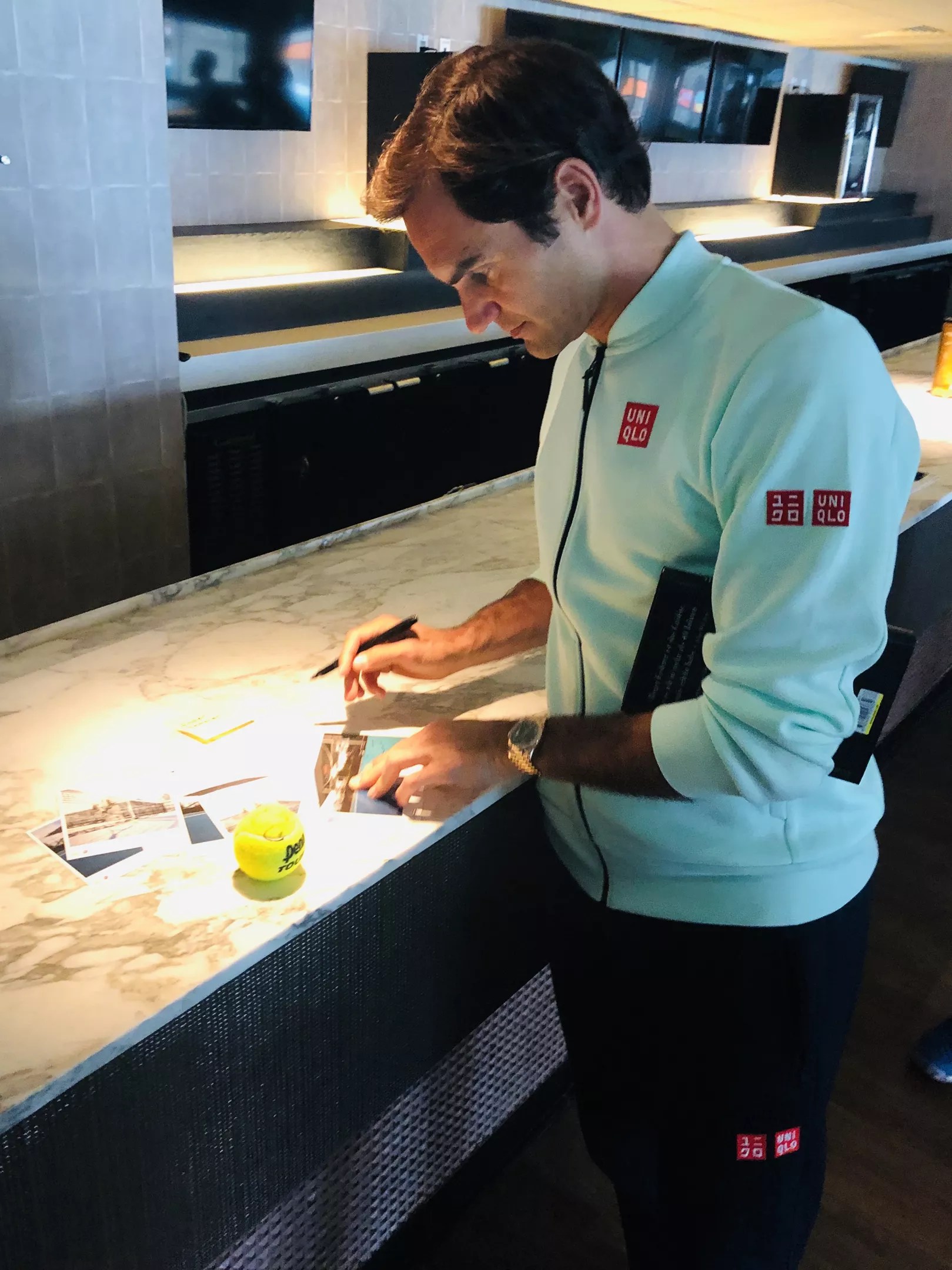 Roger Federer signs tennis balls before embarking on his Miami Open journey. He later won the tournament.