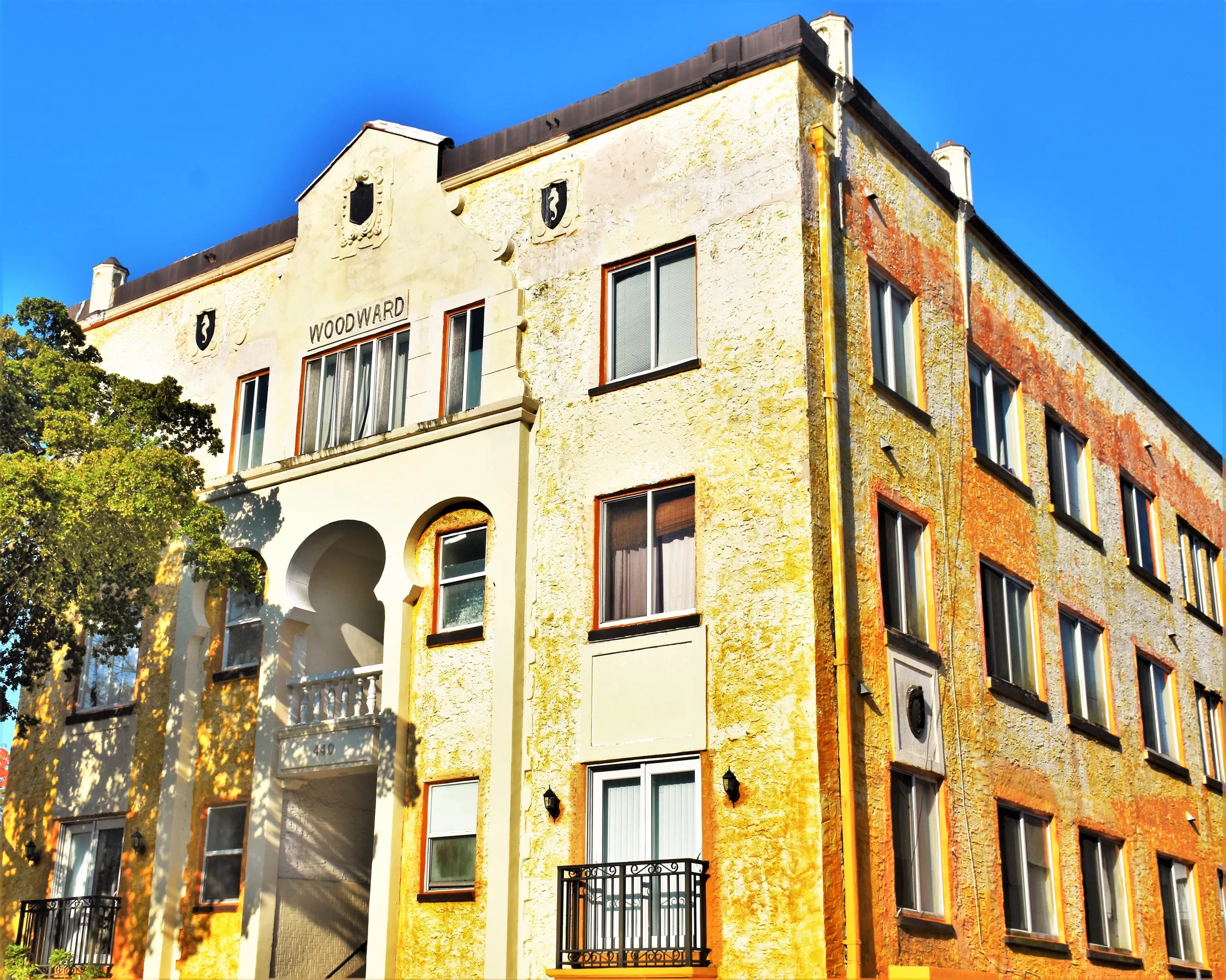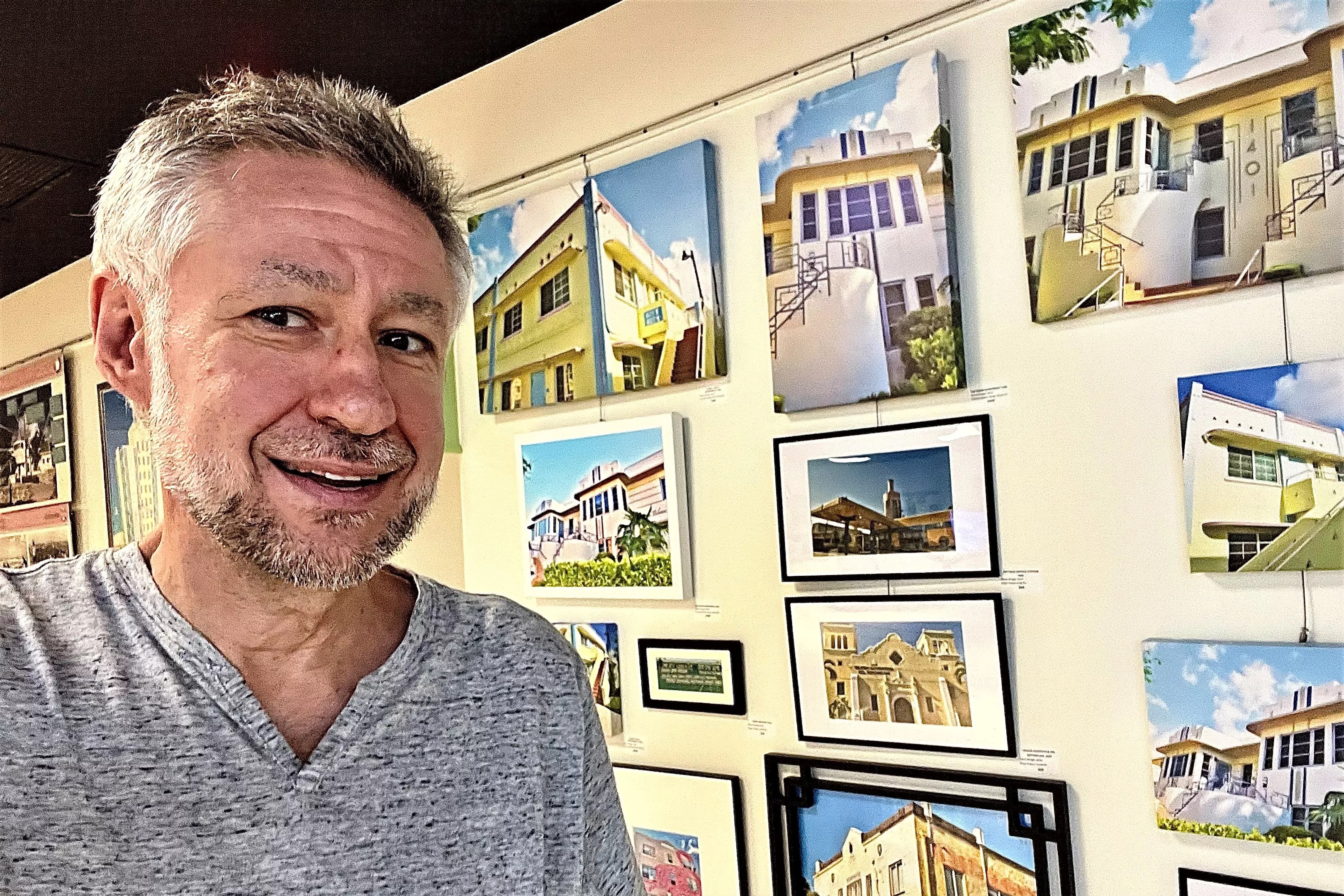 “When people see this photo exhibit, some may say, ‘Oh crap, I don’t see the roosters on Calle Ocho,’ or ‘I don’t see any of the famous buildings.’ All of my photos are off the beaten path. They’re all images that a typical visitor wouldn’t see,” Wright explains. “It’s a lot of East Little Havana, where there are these little, three-story, Mediterranean apartment buildings. They’re brightly painted, and they’ve got the little medallions, little eyebrows, and very pronounced, decorative stairways to the upper floor. Some images are of art deco buildings that looked like they’d be at home in Miami Beach, which I thought was a fun juxtaposition since everybody thinks of Ocean Drive when they think of art deco.”
