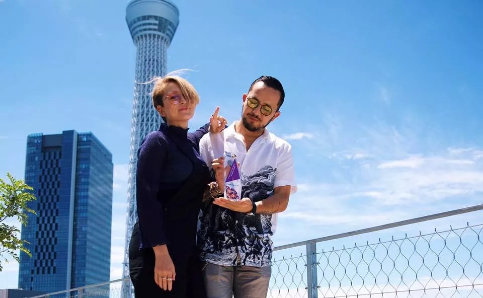 Valerie Lopez and Camilo Rojas of Shoot My Travel after winning their pitch competition in Japan.