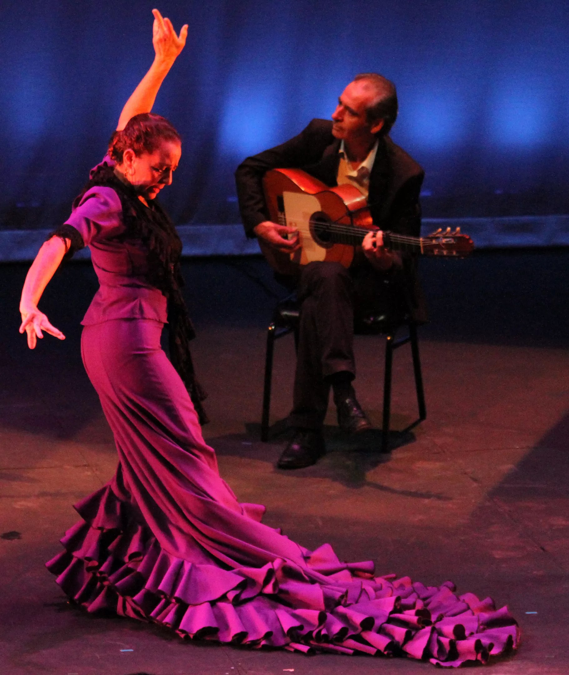 When asked about the three husband and wife pairings (which include Celia and Paco Fonta) that fill out this year’s program, Celia says: “It is pretty common in flamenco that you have a singer and a dancer or a guitarist pair off together.”