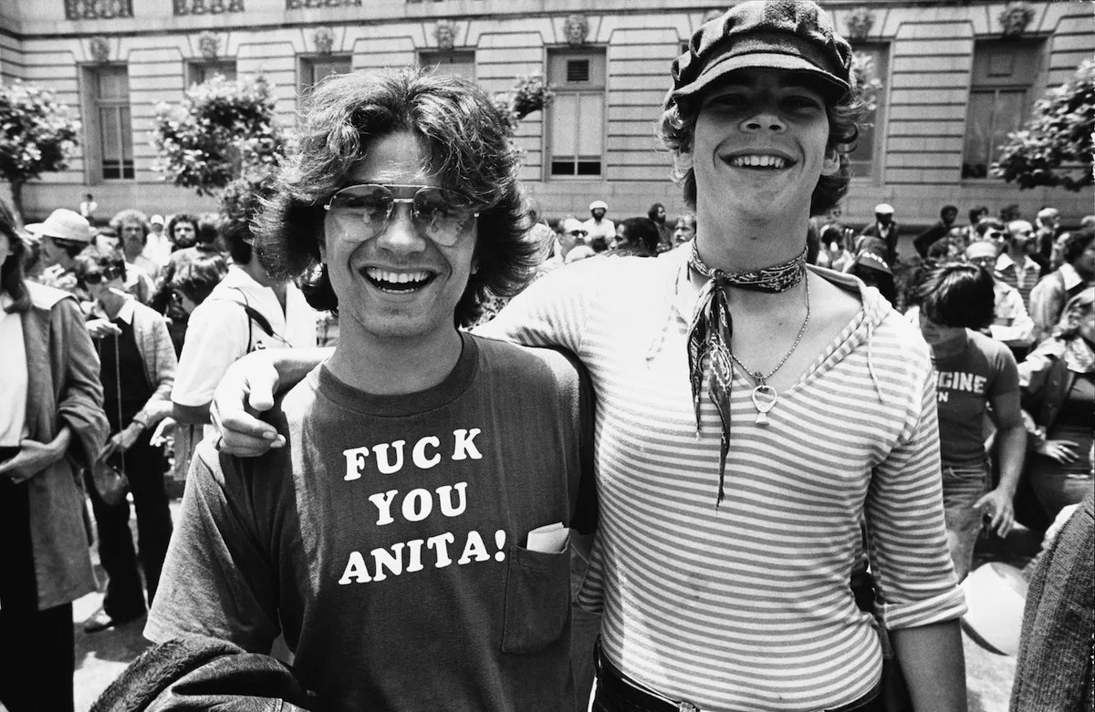 Men at the 1977 San Francisco Gay Pride, then known as Gay Freedom Day.