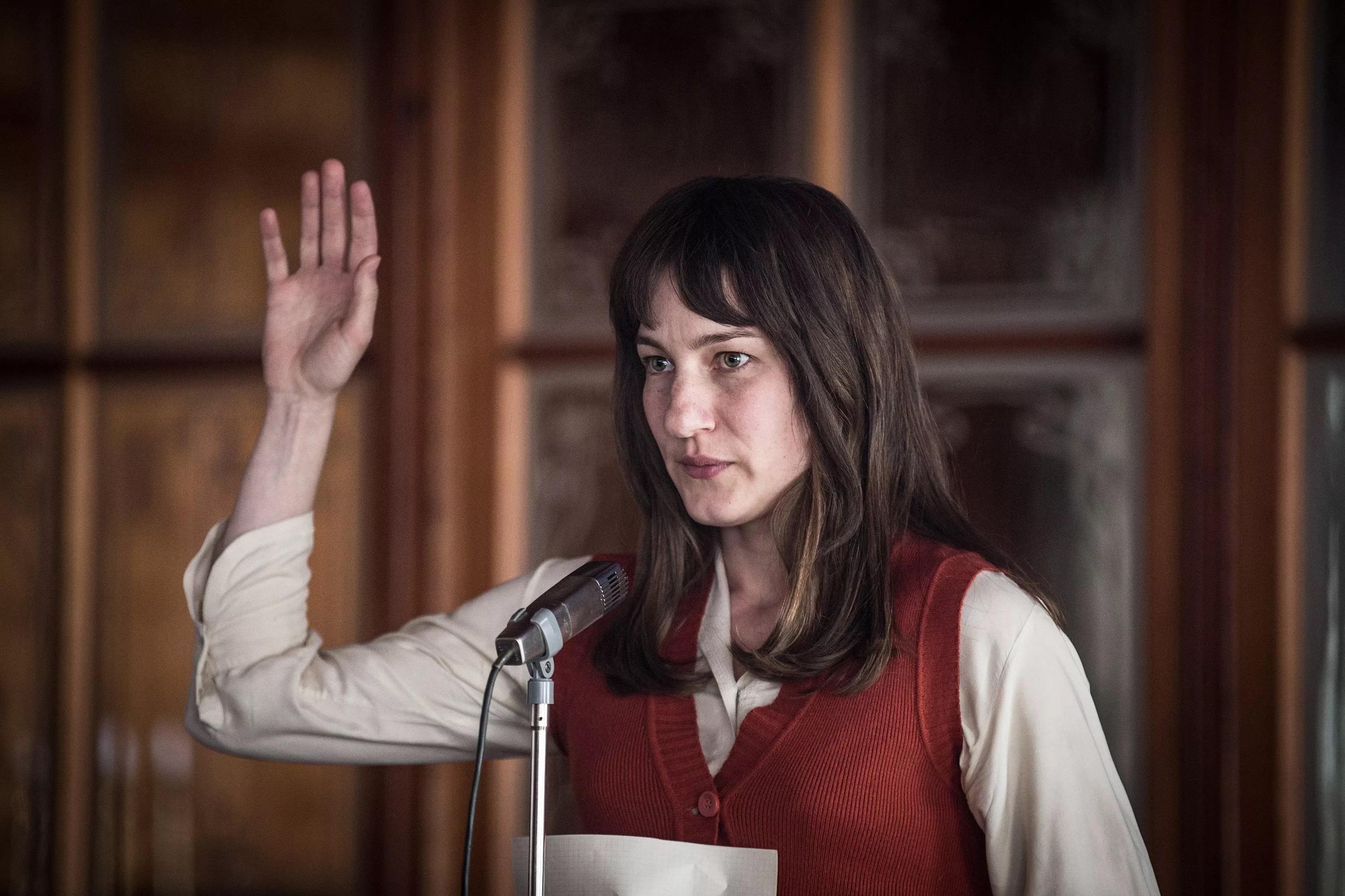 In The Divine Order, Marie Leuenberger plays Nora, a wife and mother of two young boys who looks like she