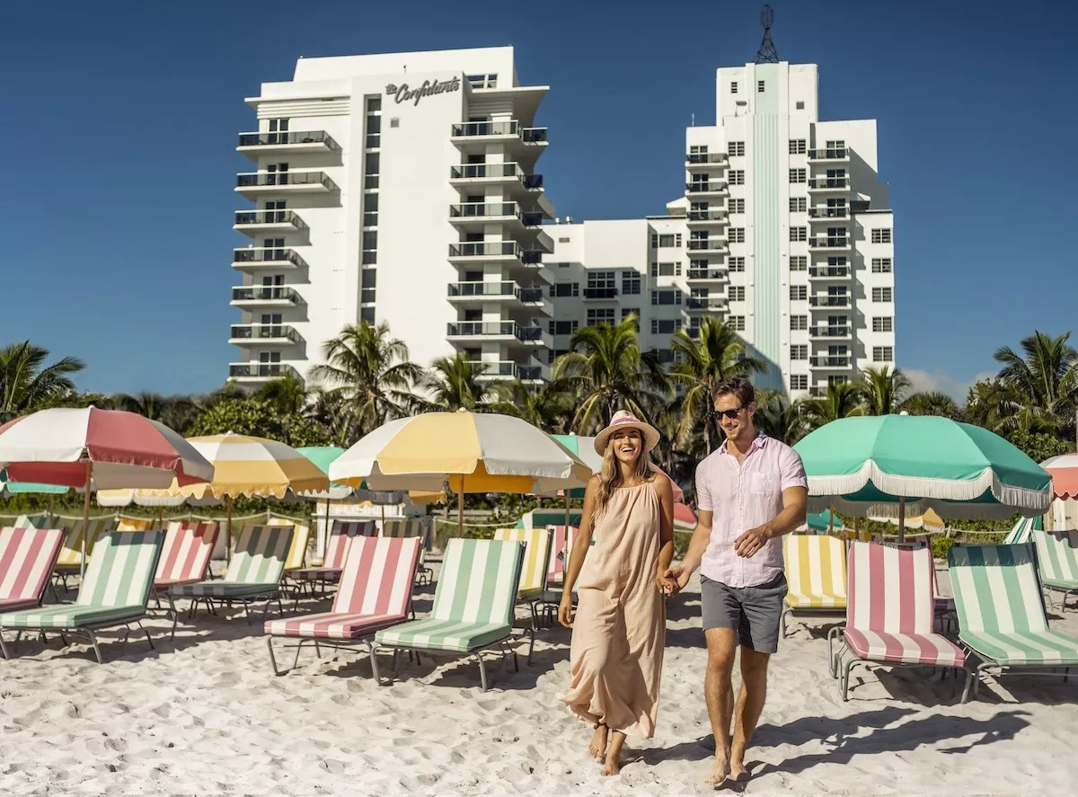 ritzcarlton.com Tucked at the eastern end of Lincoln Road, the Ritz-Carlton, South Beach, is positioned perfectly between white sands and oodles of shopping and dining across A1A. But with so much to keep you occupied on the property, you may never want to leave this staycation paradise. The rooms here live up to the Ritz name, with sleek furnishings and marble-clad bathrooms with standalone tubs. To take your stay to the max, book an option with access to the Club Level, which includes complimentary delicacies throughout the day, including cocktails, Latin-infused bites, and key lime cookies.