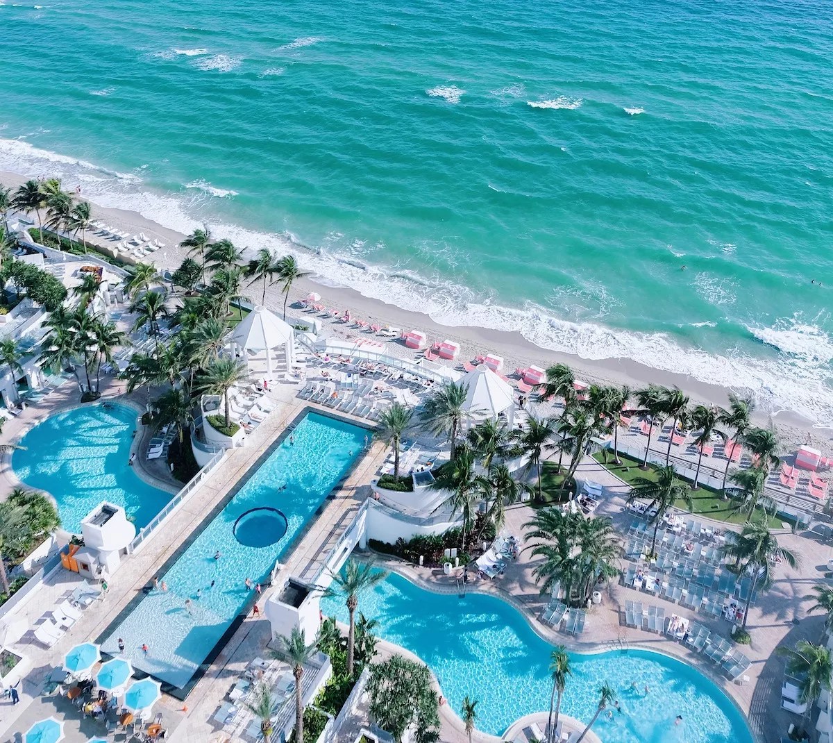 diplomatresort.com Tucked between Fort Lauderdale and Miami, the Diplomat continues to be a central hub for all the action. The 1,000-plus room resort beams with whites, blues, and pops of colors, all reminiscent of the white sand beach it overlooks. Restaurant-wise, six options span the spectrum from Playa, a poolside joint with a rum and tequila bar, to Diplomat Prime, which took home a Wine Spectator Award of Excellence for its list of 500-plus wines. For bonus relaxation, there is a 14,000-square-foot spa with a waterfall sanctuary. If you bring the kiddos, there is a kids’ club with scavenger hunts, arts and crafts, and more.