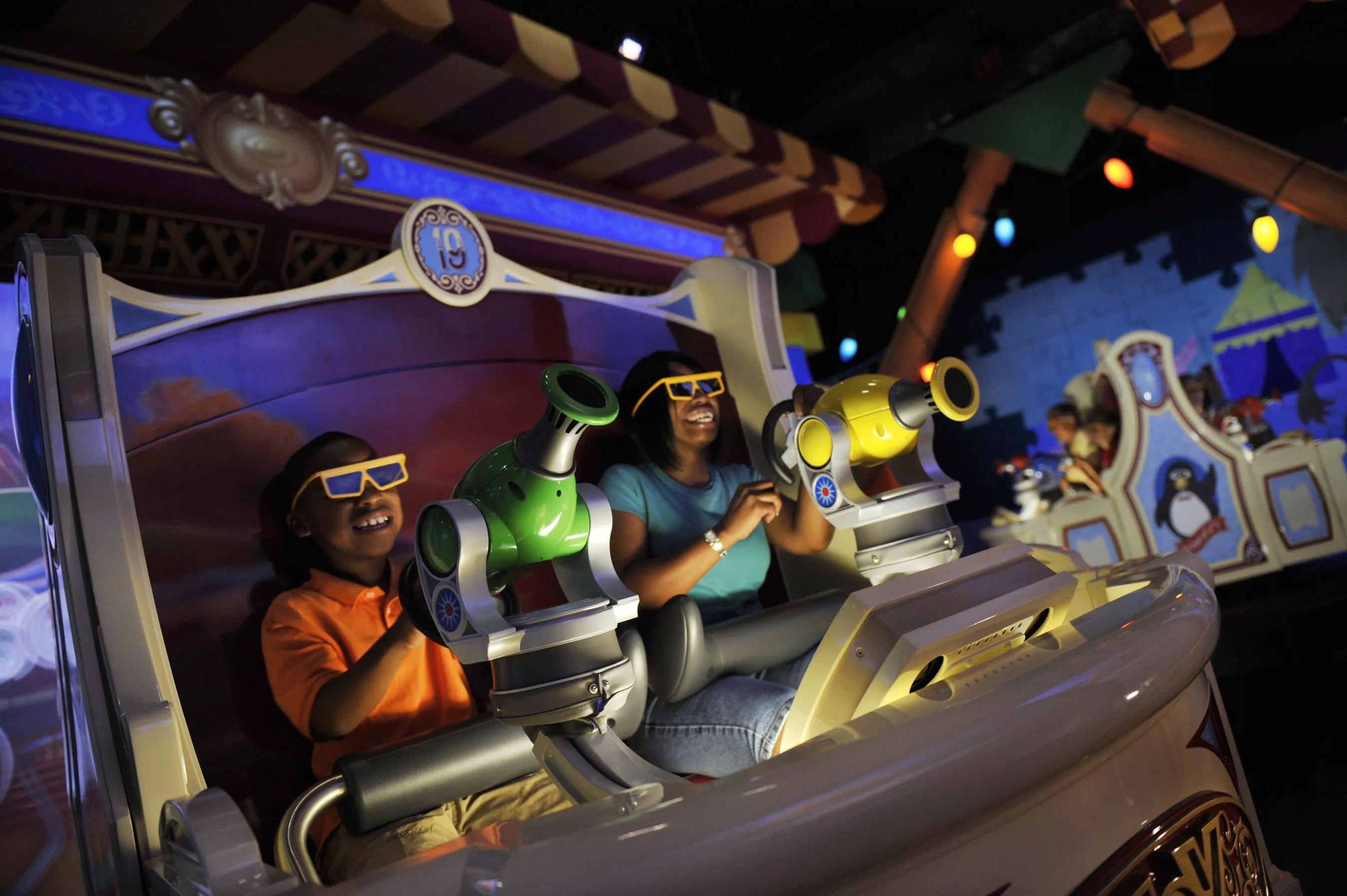8. SeaWorld. Wait, hear us out. Following the Blackfish backlash, SeaWorld has been phasing out its orca shows and breeding and replaced its dolphin show, Blue Horizons, with the educational Dolphin Days. For some visitors, that’s enough. Others believe more changes are necessary. One thing is certain: SeaWorld is in transition mode. There’s been a welcome shift in focus with the additions of the Mako hypercoaster, upcoming Infinity Falls rapids ride, Electric Ocean night show, and Seven Seas Food Festival. And did we mention SeaWorld is less crowded these days? 7007 SeaWorld Dr., Orlando; 407-370-1239; seaworld.com/orlando. Toy Story Mania at Disney’s Hollywood Studios. Courtesy of Disney