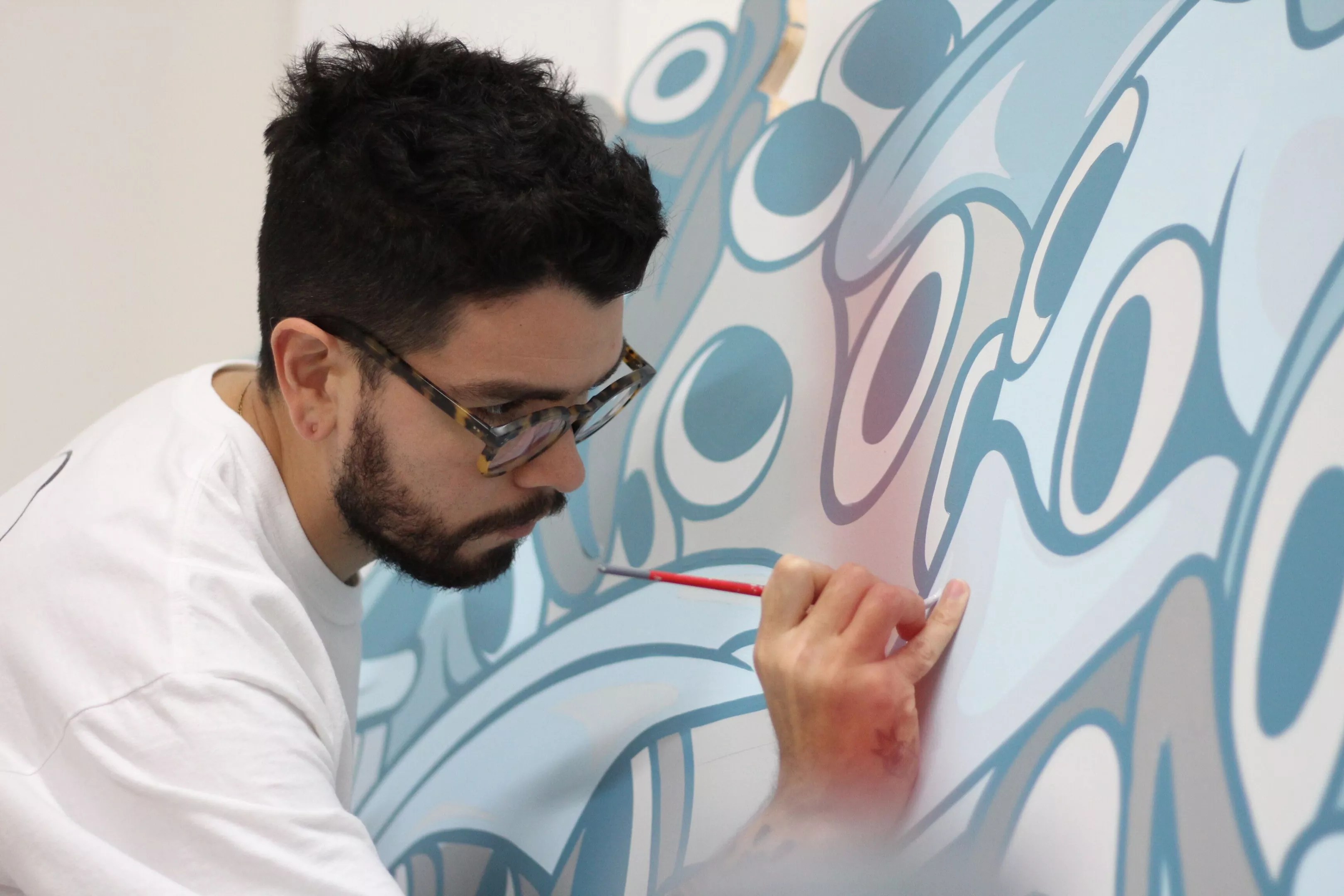 Skateboarding sparked Hall’s interest in making art. Having been skating since he was 11, he developed his love for painting on wood after repainting skateboards for his friends. After coming across the idea of a skateable art exhibit during a stay in Portland, Oregon, Hall thought the concept would work well with “Shadowplay” and give him an opportunity to show the impact his two passions made on him.
