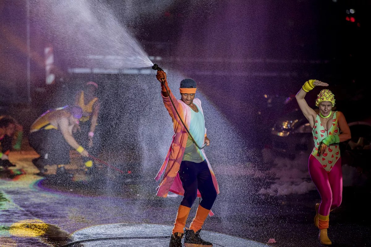 Dubbed “the greatest car wash show on earth,” Caraboom is a titillating disco journey that utilizes human water fountains, bubble machines, and foam cannons that are a soaking hazard to those seated in the designated splash zone. (Though splash-zone audiences are provided raincoats, be prepared to get soggy.) Encouraging the audience and passengers to meditate and boogie throughout the show’s 45-minute runtime, the show functions as a cleanse of sorts. Not just a vehicular or bodily one, but mainly as an embodiment of a soulful spiritual purge or restoration.