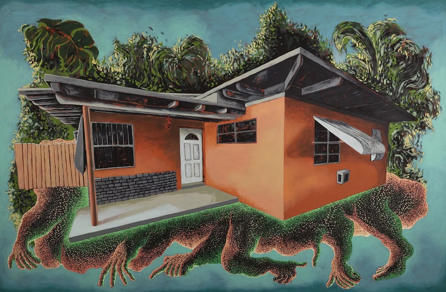 “While there is no single work, I like the metaphor of water, treading water, human buoyancy, and how we are not always aware that we can float in water, so we tend to struggle against it rather than relax and survival float,” she explains. “So many immigrants cannot swim, yet they take to the water literally with hopes and prayers. And though the waters in the Caribbean and South Florida are beautiful, I often think of how that beauty swallows so many lives in search of better.”
