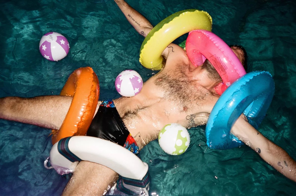 His image features a man submerged in water, his body covered in floaties. “It gets really warm in Florida, and many times we are trying to find an escape, a way to cool off,” he says.