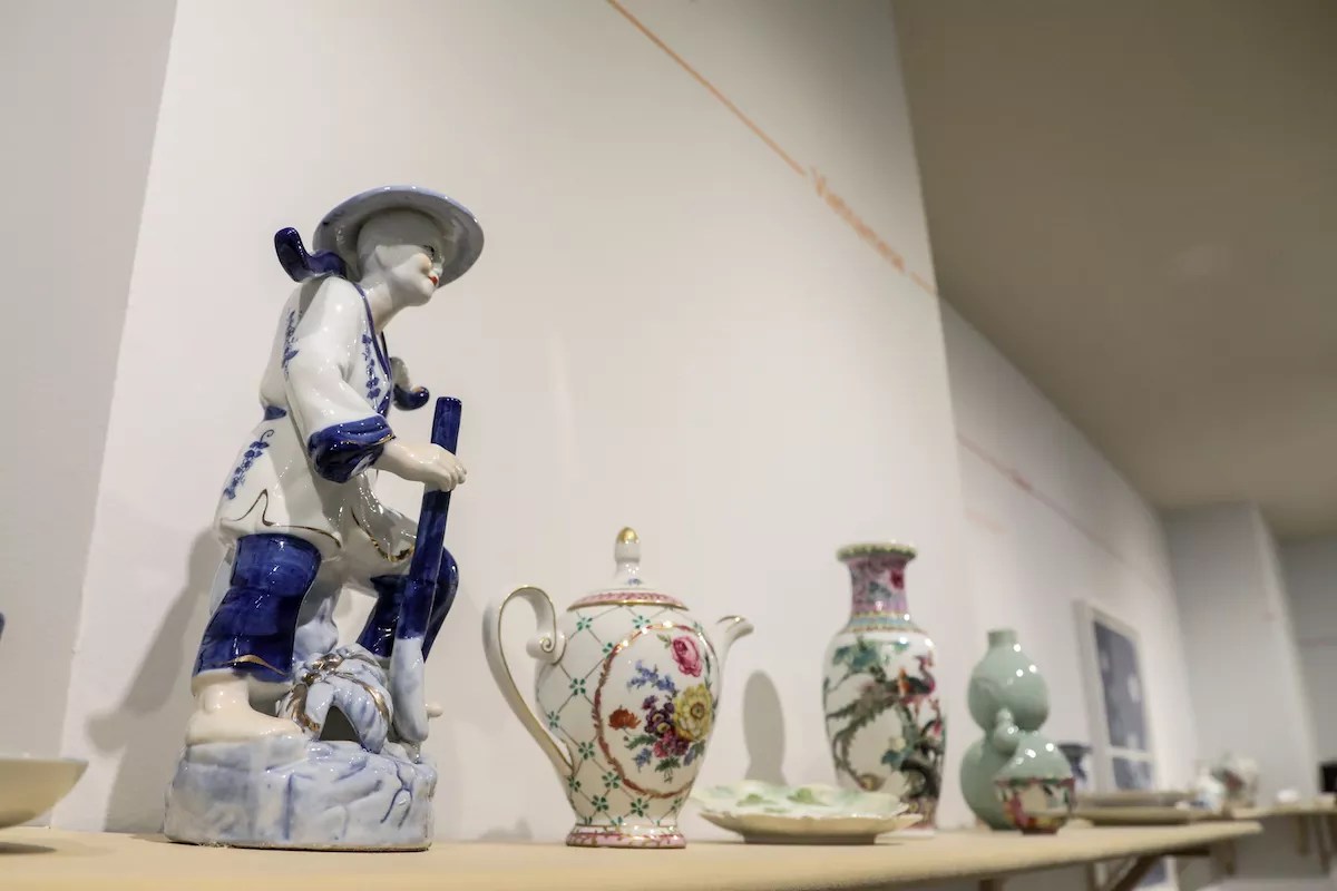 Many are made from mass-produced porcelain, a material that’s fascinated Valdes since she took part in residencies in the European Ceramic Workcentre in the Netherlands in 2002 and 2013. As an indication of her long interest in the metaphoric resonance of simple, hand-held objects, she first produced a series of delicate porcelain objects resembling children’s paper boats. She then became intrigued by the role of Dutch ceramics in the history of global trade, beginning with the Dutch East India Co. in the 17th century.