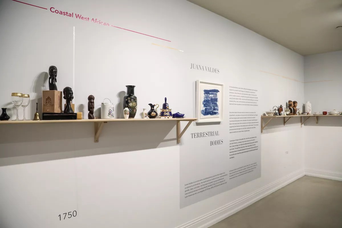 Valdes has scavenged remains of what could be called the capitalism of “collectibles” to map centuries of trade between the northern and southern reaches of the globe. Her effort peels back a unique perspective on world geography and history. That perspective is rooted in the artist’s own experience and genetic research into her mother’s ancestors, who were primarily sub-Saharan and East Asian.
