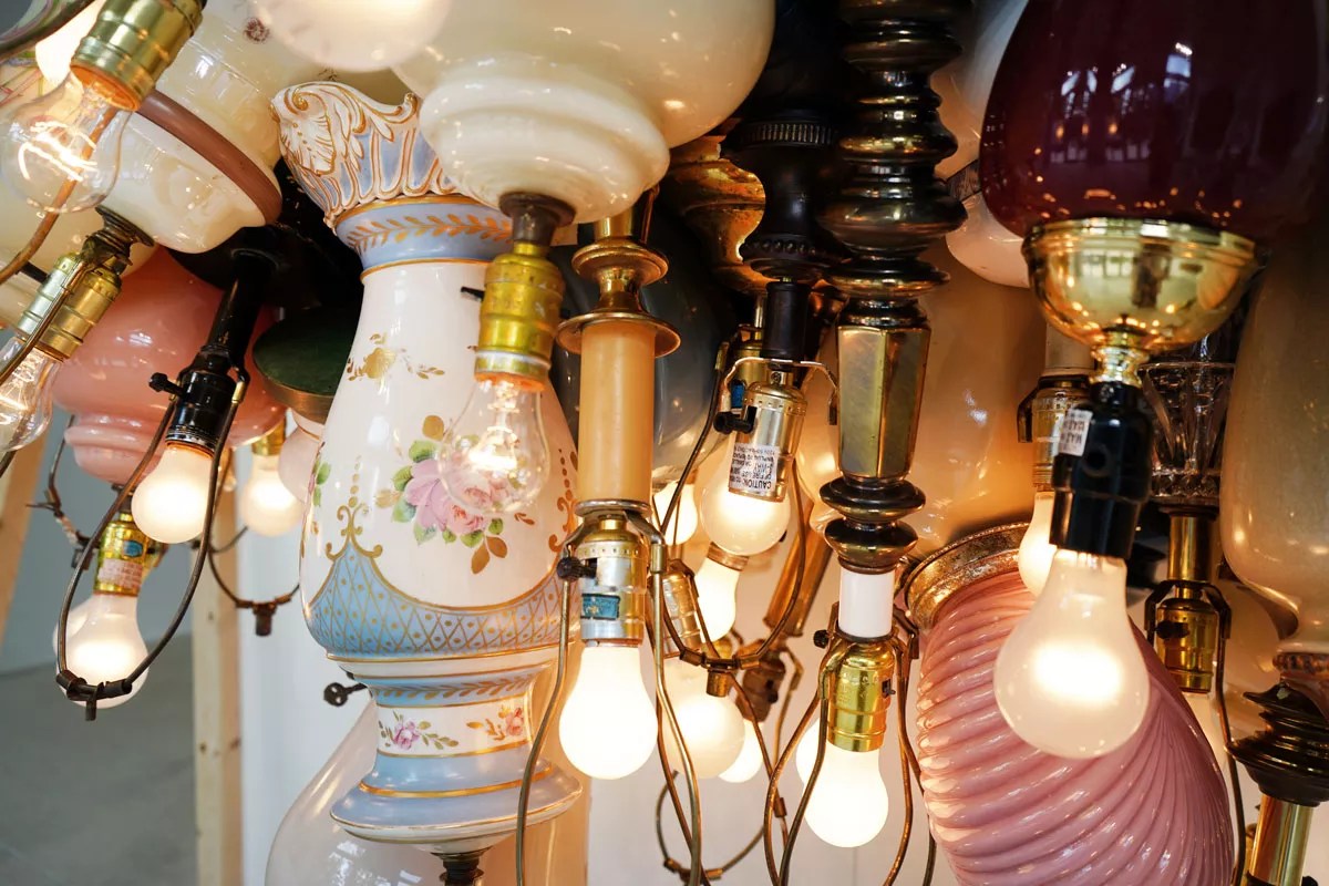 A Miami-based artist who has exhibited in numerous solo and group exhibitions in South Florida and internationally, Phillips takes a step further with these accidental collections. Taking matters into her own hands, she molds and shapes the found objects into collaged sculptures and wall displays. Throughout the installation space, the idea of the junk drawer unravels, quite literally, into several collections of “junk” – from piles of yarn laid onto a carpet to a series of lamps hung upside down in a makeshift chandelier that greets you as you enter.