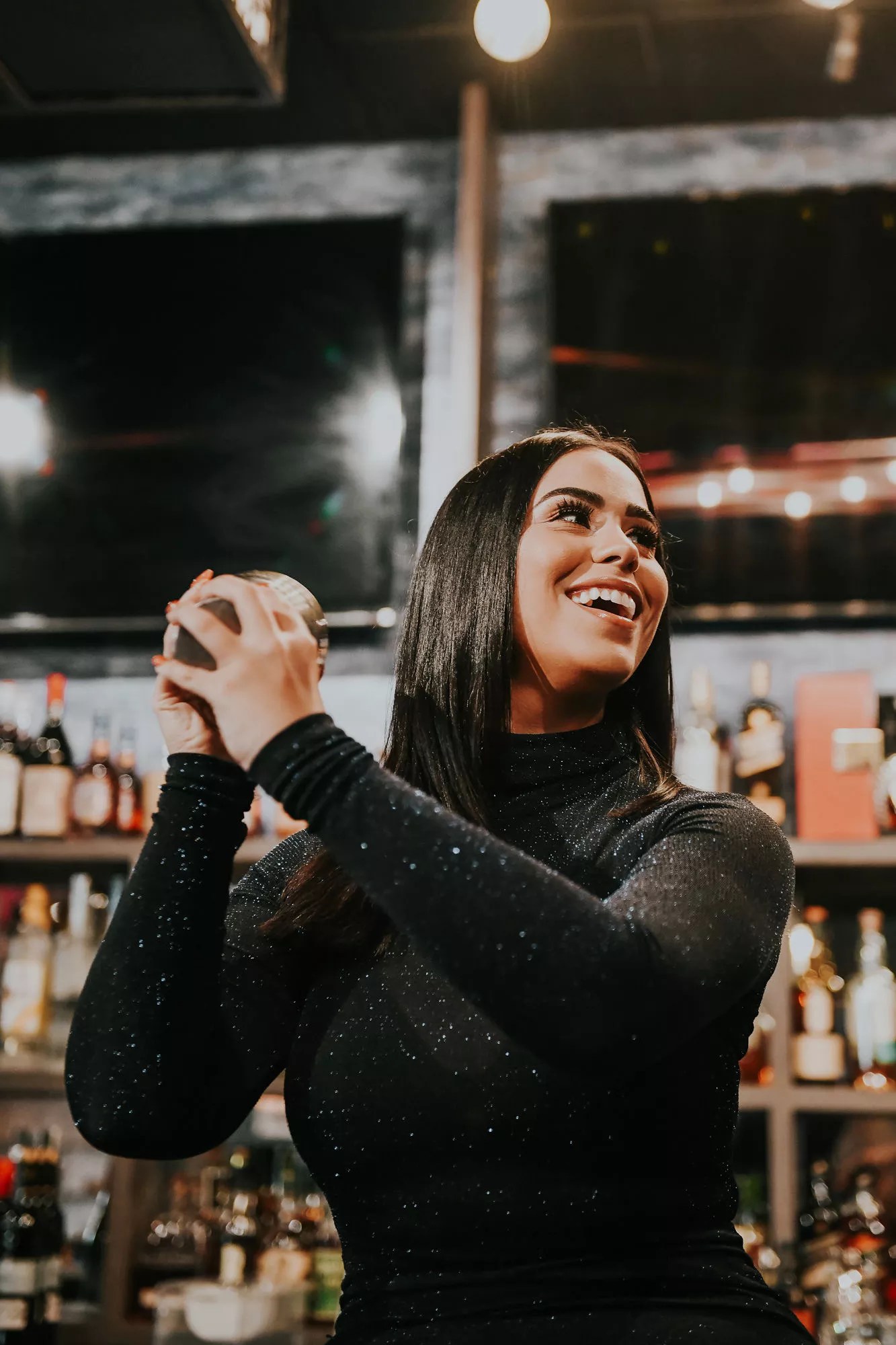 “I really also want to get behind the bar and make some shots,” she adds with a sly, Grinch-like smile. “So maybe you’ll get a specialty shot that night mixed by yours truly.”