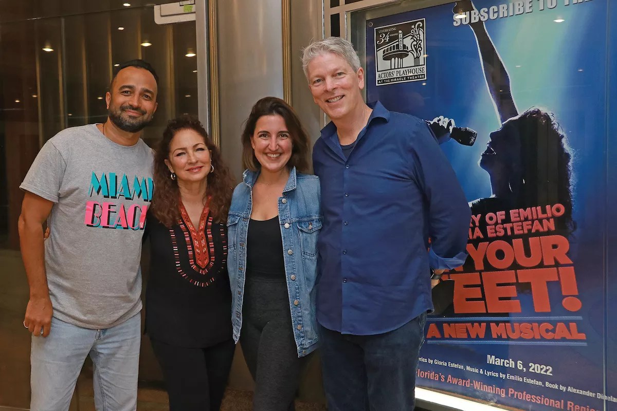 Clay Ostwald, the show’s musical director, is a University of Miami grad, original member of the Miami Sound Machine, and a composer, lyricist, arranger, and producer credited on many of the group’s hits starting in 1986. The musical’s title song (“Get On Your Feet,” written with the late Miami Sound Machine bass player Jorge Casas, John DeFaria, and Gloria Estefan), “Oye Mi Canto,” and “Party Time” are all numbers Ostwald had a major role in crafting. Though he moved to New York when On Your Feet! went to Broadway, he has come home to be part of the Actors’ Playhouse production.