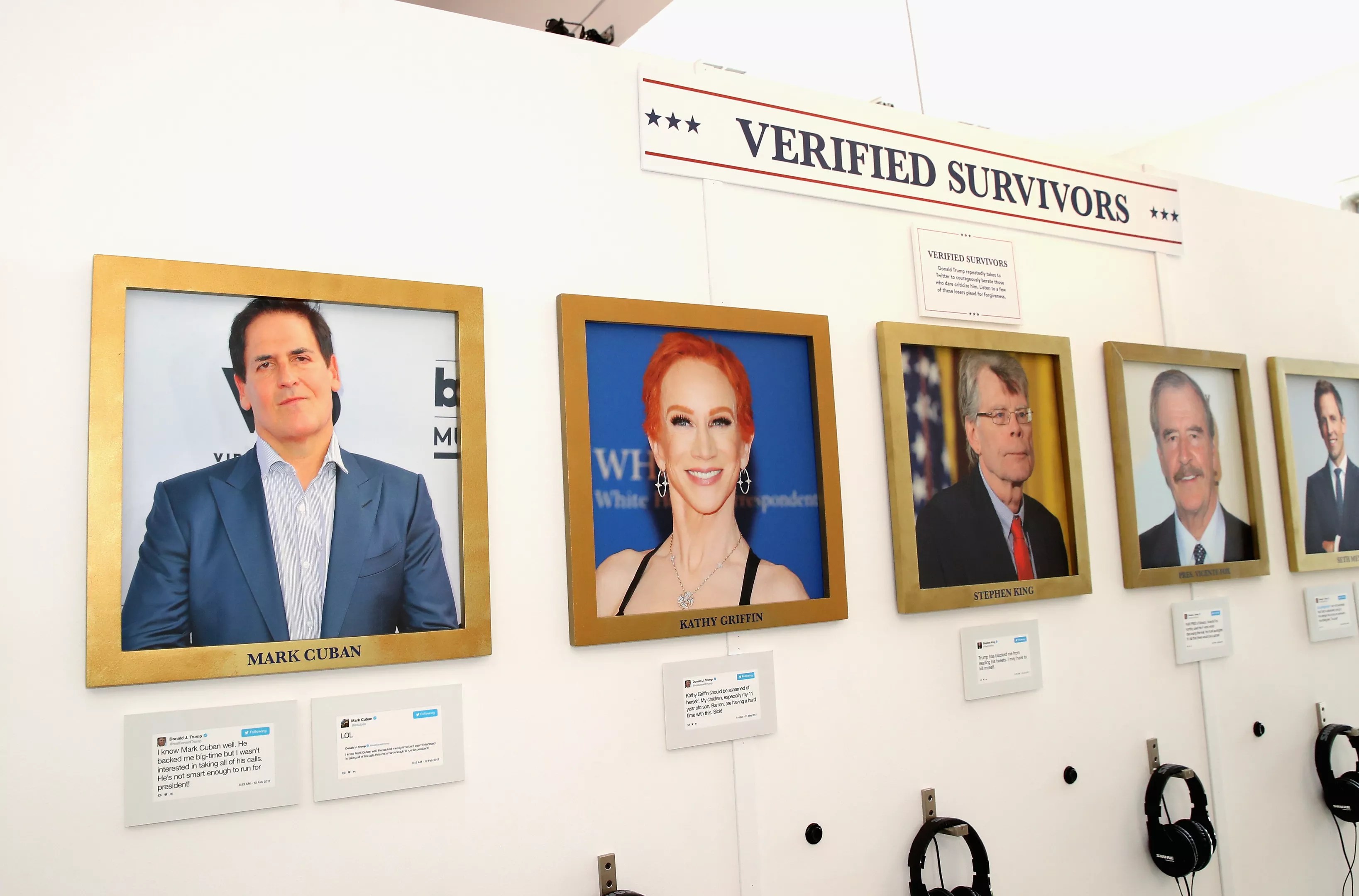 The exhibit “Verified Survivors” includes audio testimony from Mark Cuban, Kathy Griffin, Stephen King, and others who have been on the receiving end of a Trump Twitter attack.