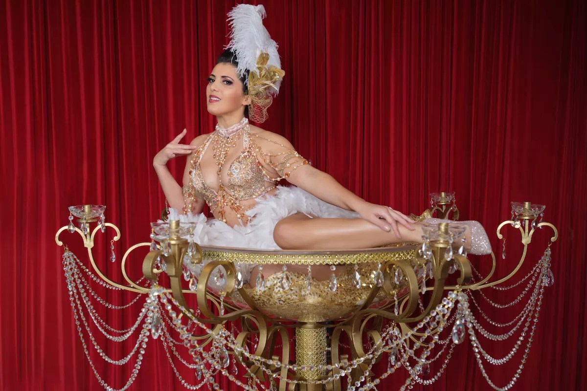 Anyone can buy candles for Valentine’s Day. Why not get creative and make them yourself? Local candle company 8:Twenty8 is hosting a Valentine’s edition of its Forever Lit candlemaking class at Sweet Delight Cheesecakes. Supplies and cheesecake will be provided. Feel free to bring your own wine. 7 p.m. Saturday, February 12, at Sweet Delight Cheesecakes,1550 NE 165th St., North Miami Beach; 305-924-6981; 8twenty8.net. Tickets cost $45 to $83 via eventbrite.com. Take it off with Erika Moon. Photo courtesy of Erika Moon’s Burlesque