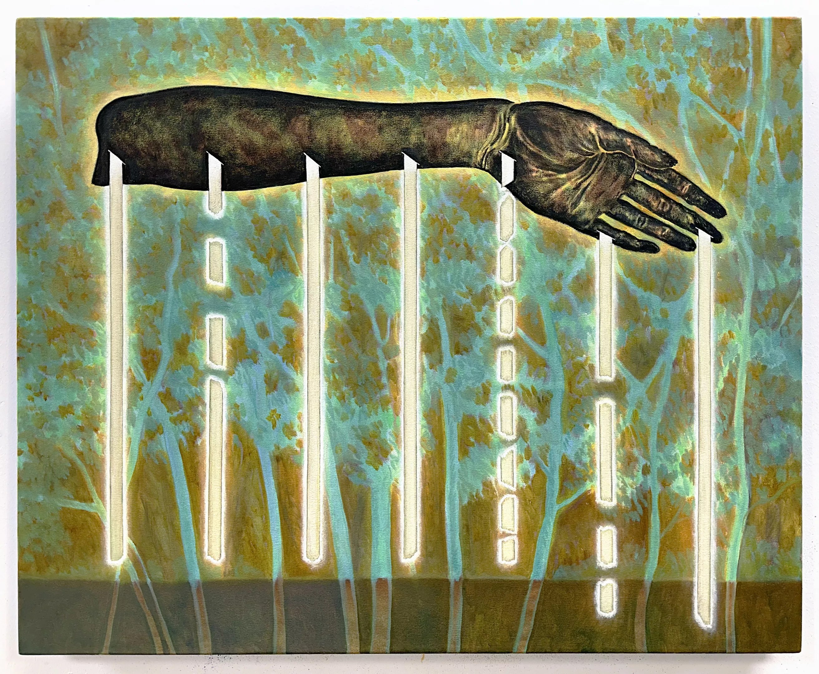 Indigenous voices are at the center of Nina Johnson’s exhibitions. Patrick Dean Hubbell, a member of the Navajo Nation and, when he’s not painting, a cattle rancher, is showing abstract canvases drawing on the philosophy and culture of the Diné people. Meanwhile, unsung Peruvian great Josué Sánchez, a renowned muralist back home, made his U.S. debut with a group of neo-figurative paintings inspired by the Andean worldview. On view through Saturday, January 11, at Nina Johnson, 6315 NW Second Ave., Miami; 305-571-2288; ninajohnson.com. Spinello Projects has new work by Marlon Portales on view. Courtesy Spinello Projects, Photo by Zack Balber
