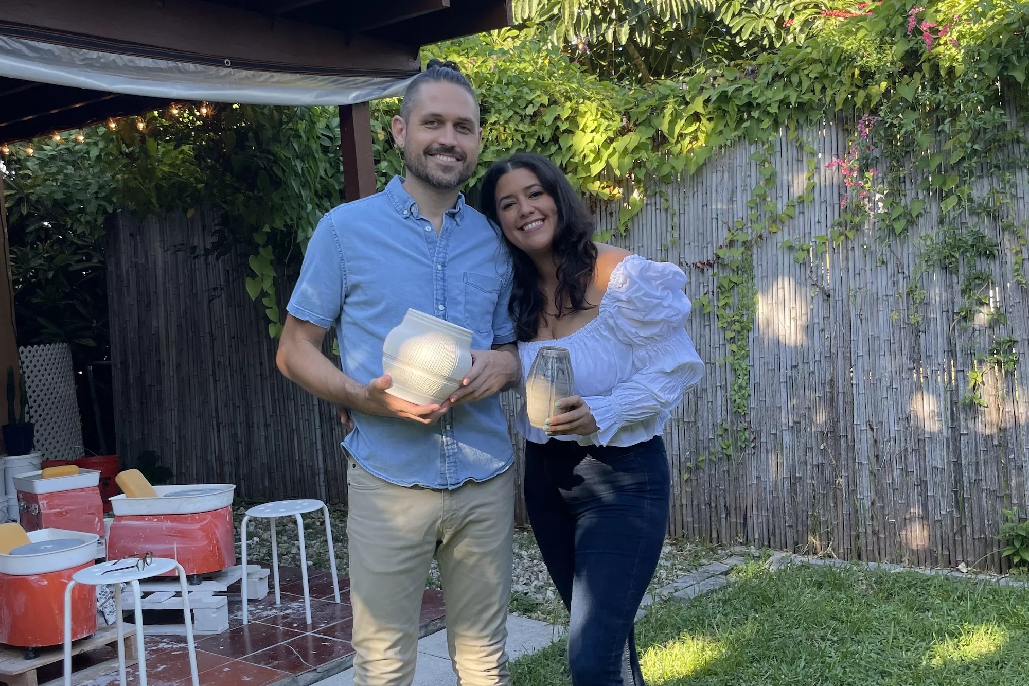 After buying a pottery wheel and diving deep into YouTube to learn about working with clay, they moved to an Edgewater property with a mango tree-shaded backyard and an Airbnb space. They thought ceramics classes would be fun to offer guests, but two months after their first class with friends, the two had already quit their full-time jobs in tech to build a pottery school.