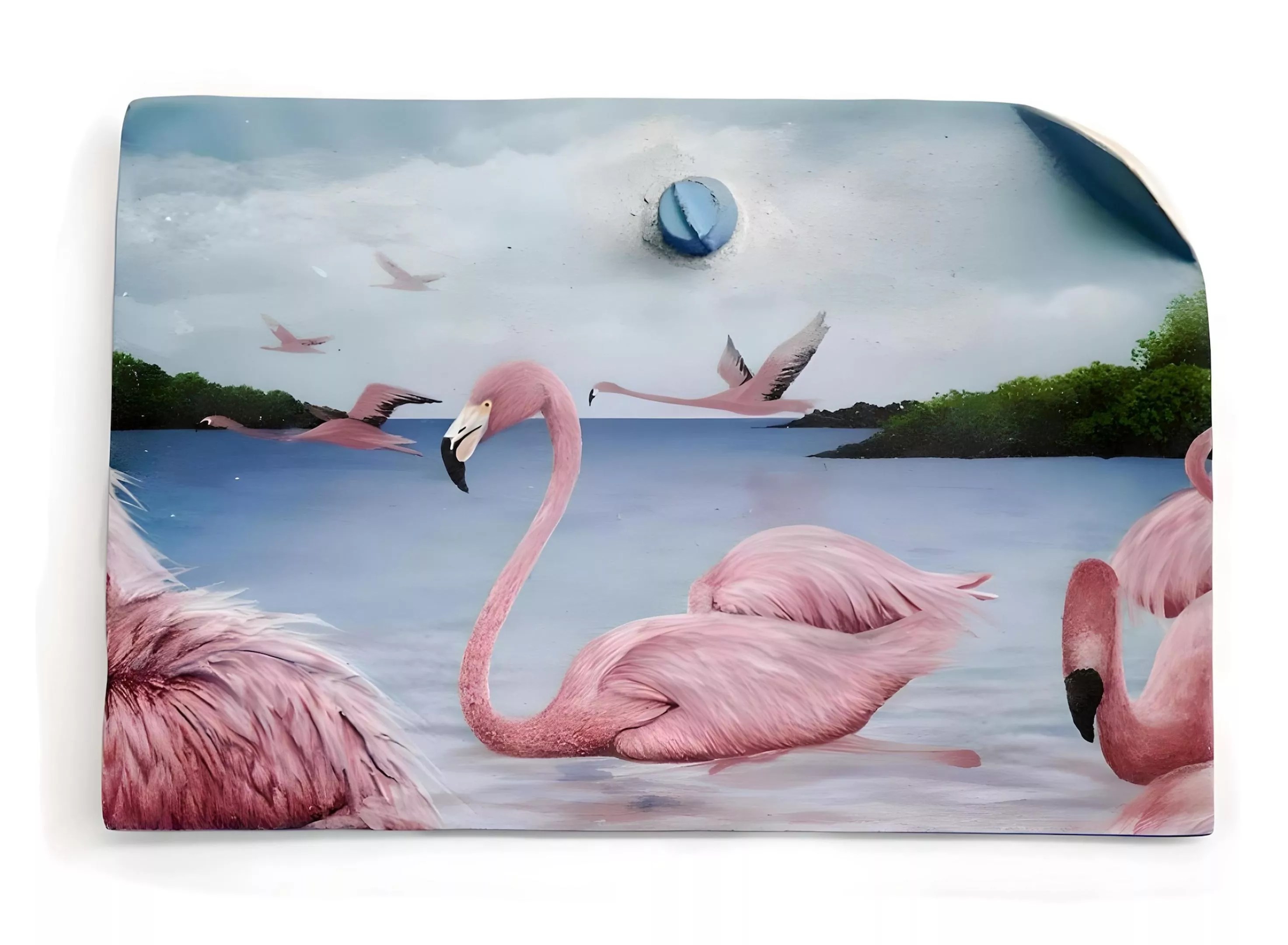 Mindy Shrago, Flamingos in Flight, with ceramic push pin, 2020