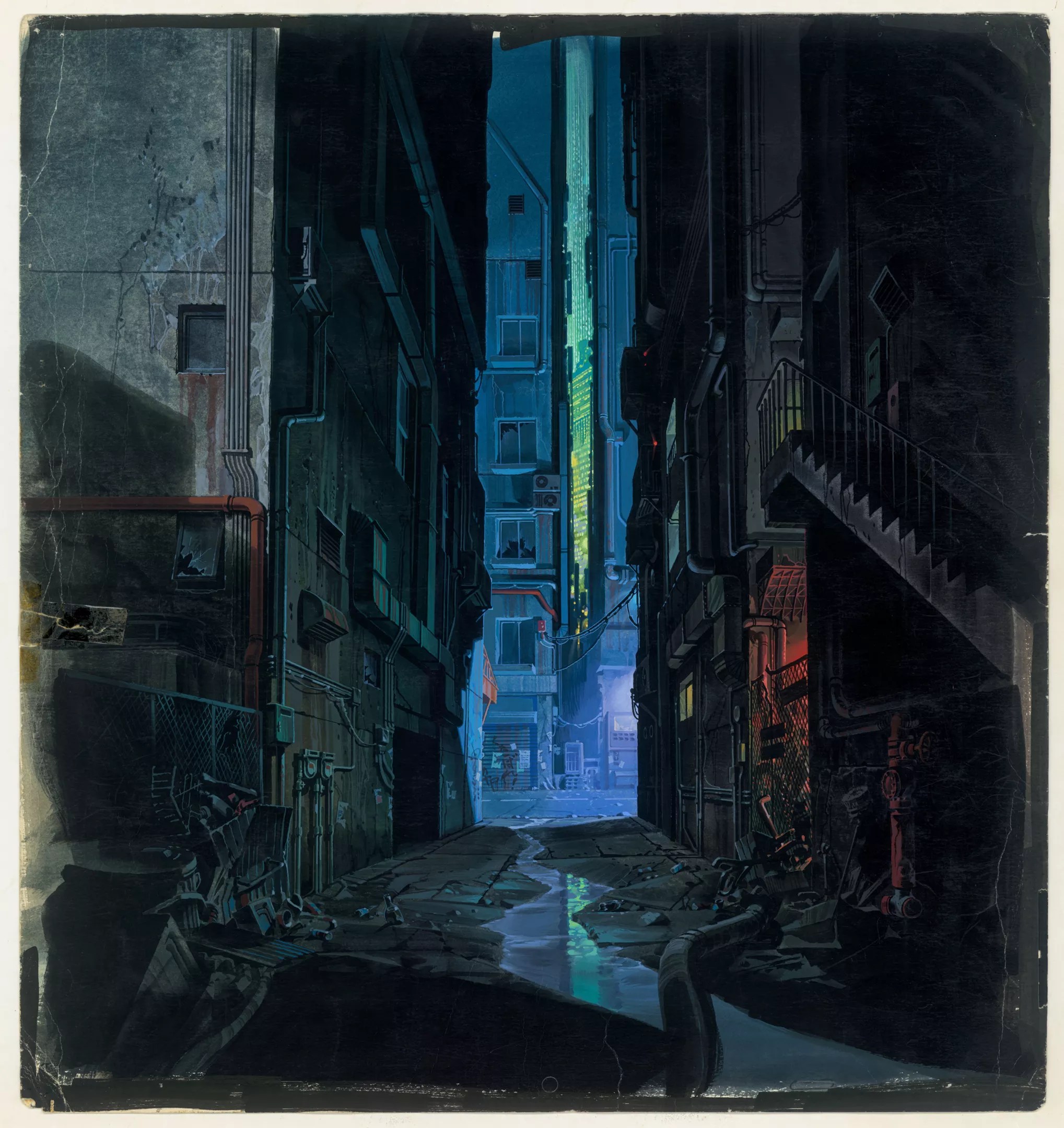 “The cityscape of Neo-Tokyo is really a façade. You cannot draw a map of Neo-Tokyo; it doesn’t exist,” Riekeles shares. “So this city, and especially these paintings, are designed for the visual effect.”