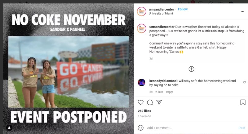 University of Miami students attempted to institute a No Coke November campaign that ended eight days into the month.