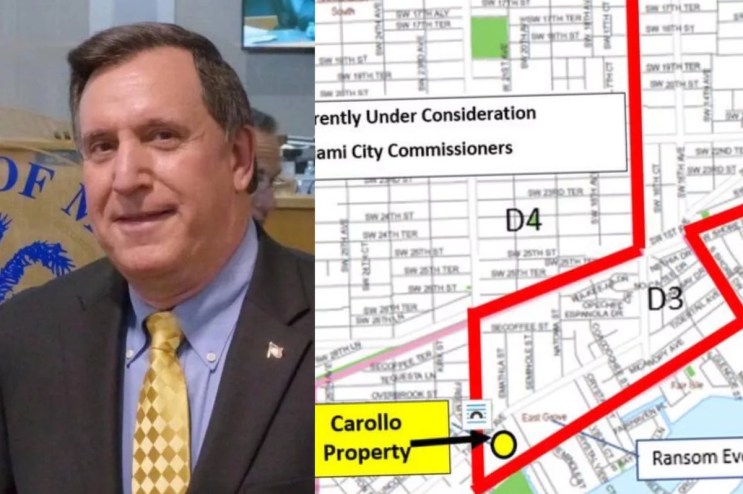 A curiously shaped carve-out on Miami’s redistricting proposal nudges Carollo’s spacious home into his district.