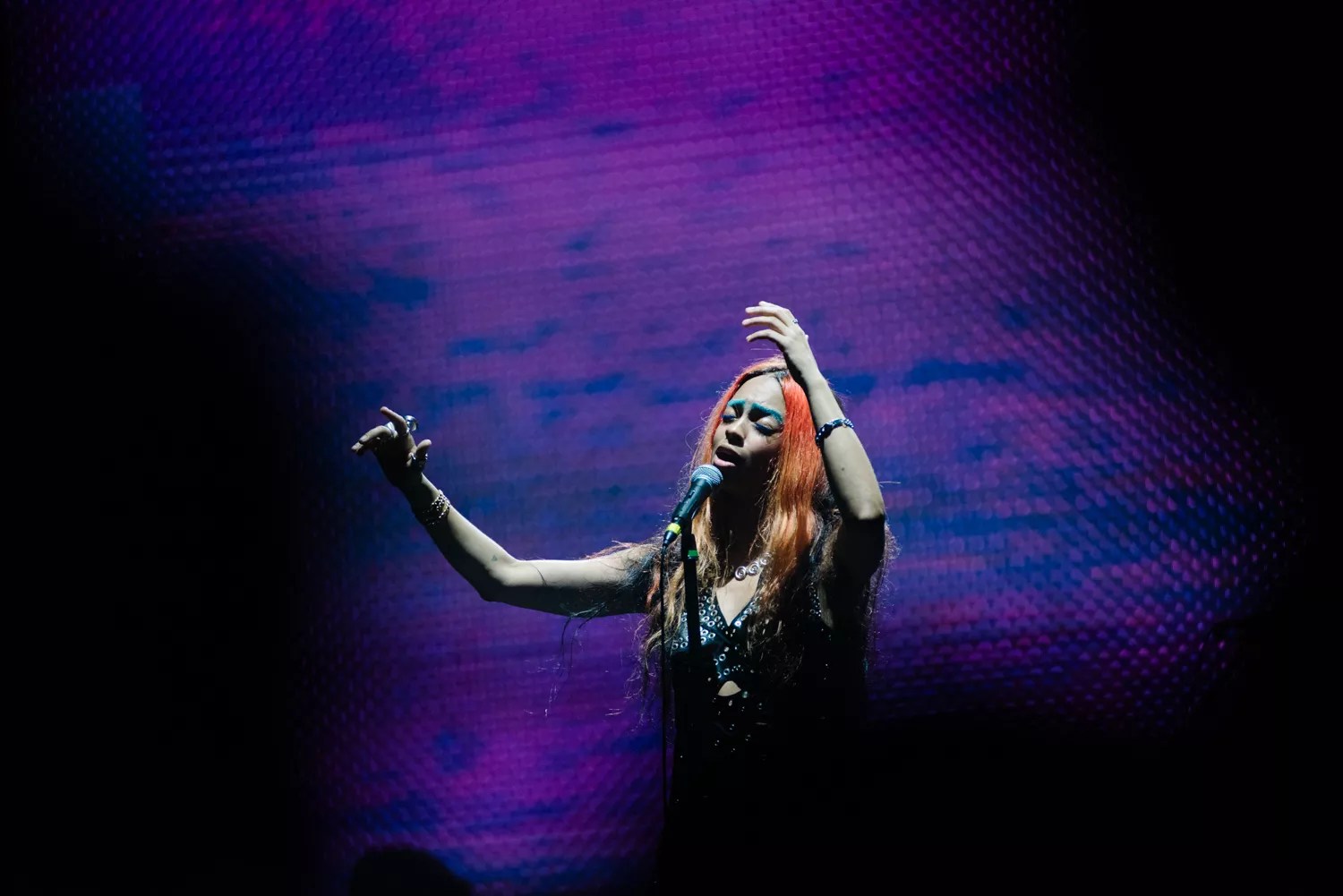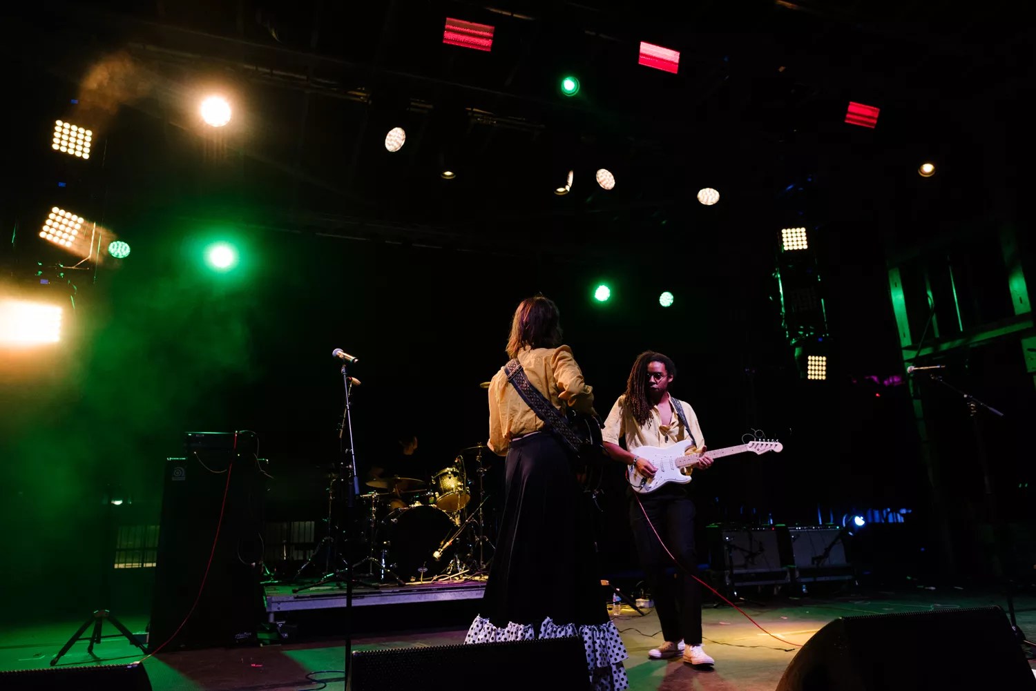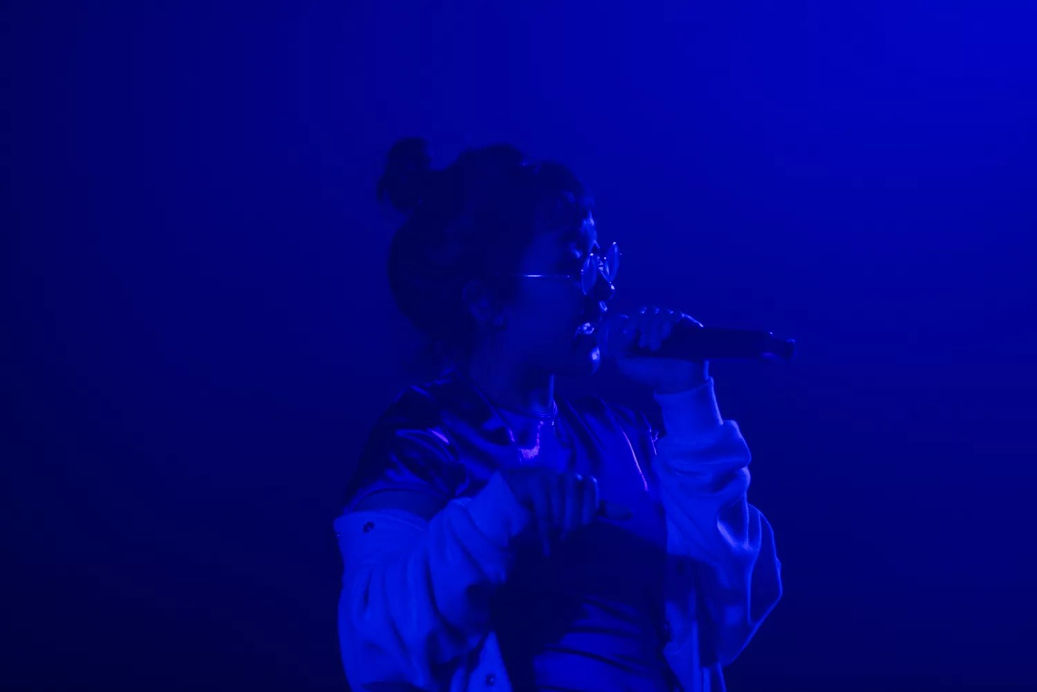 Kelsey Lu. Every once in a while, festival attendees will recognize in real time they’re witnessing something truly special from an up-and-comer. These kinds of moments are common at a fest like III Points, where organizers make an effort to book fan favorites even as they predict the future musical landscape. Singer Kelsey Lu, one of the opening acts on the Mind Melt stage last night, was the architect of one of those moments. Lu opened her set singing a cappella, with eyes closed, arms outstretched, her body backlit by red spotlights, and her teal eyebrows glowing prominently. Backed by a four-piece band including a violinist and sax player, Lu held the audience captive as she crouched down and howled to the skies throughout the set. It was clear she was a new face to most in the audience, which held its applause until the end of even her better-known songs such as “Due West” and “Shades of Blue.” She spoke of writing the latter when she was depressed and living in a small room in Hoboken, New Jersey. Lu channeled more of that angst into her final song, “Liar,” closing the set just as it had begun, with her voice taking center stage, backed by only sparse piano accompaniment. – Celia Almeida
