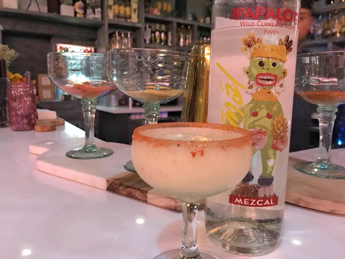 Cocktails range from a low-alcohol “mamarita,” made with rosé wine, St-Germain, passionfruit, lime, and agave and served with a sweet jalapeño rim ($11), to the restaurant’s take on a margarita – the Casa Del 222, containing Tromba tequila, Mandarine Napoleon liqueur, lime, and agave and finished with a hibiscus tajín rim ($11).