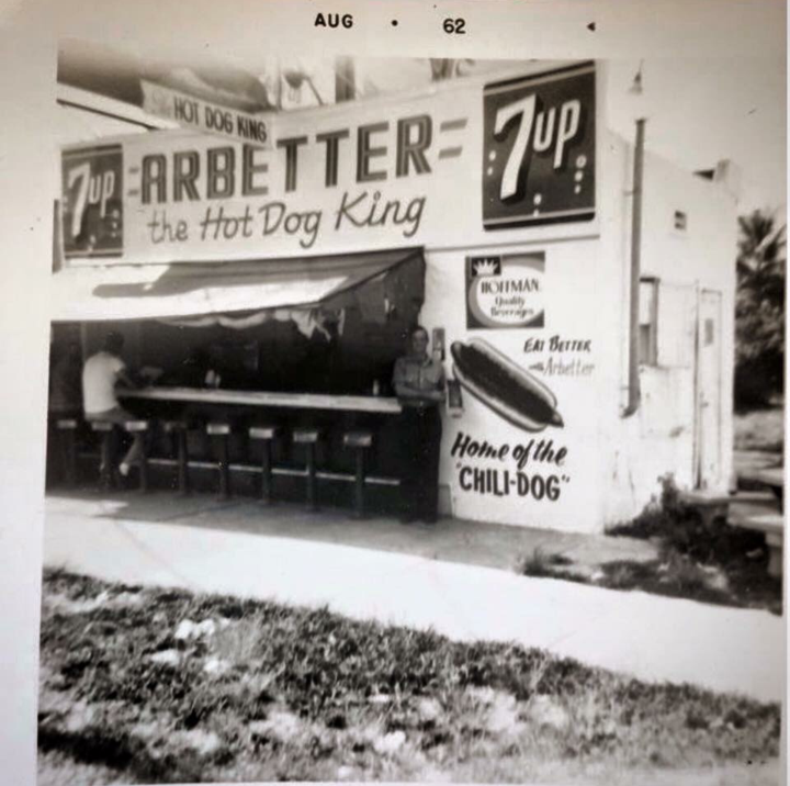 Robert stayed at that location, crowned with a sign that read “Arbetter’s the Hot Dog King,” until 1962 before relocating to a new spot at 9000 Bird Road. They were there for a year before moving again, this time to a shared location with a Dairy Queen. When a landlord jealous of how much business Arbetter was doing pulled the rug out from under them to open his own stand, they moved to this fourth and final location in 1970.